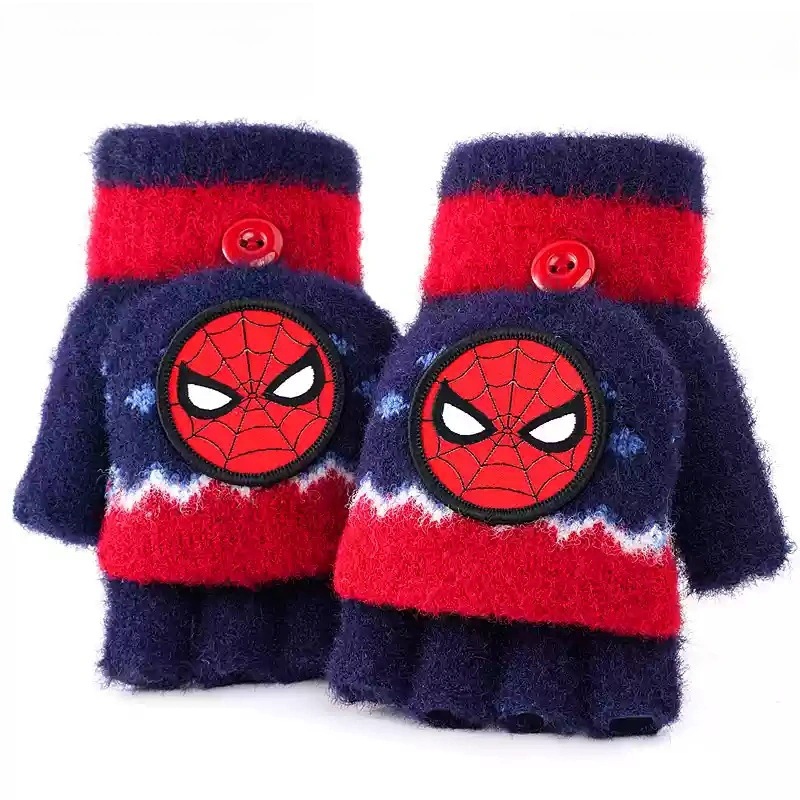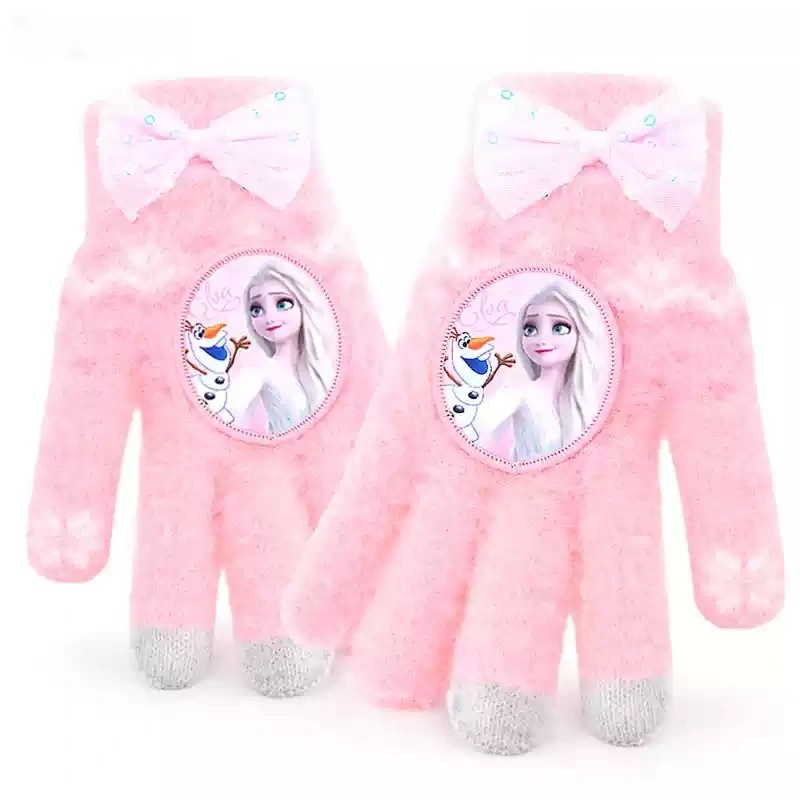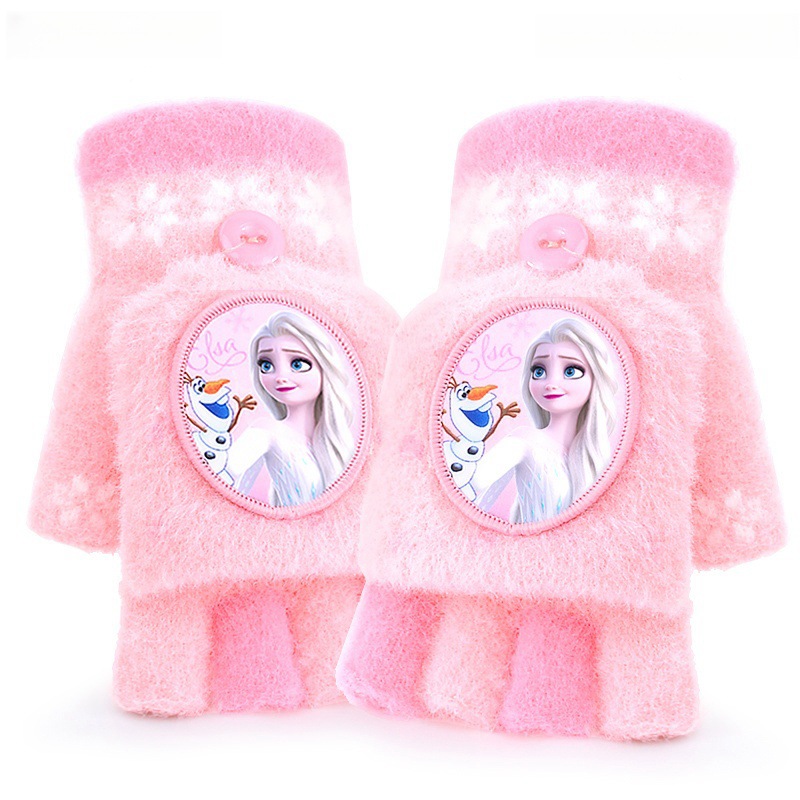 디즈니 어린이 장갑 겨울 따뜻한 니트 플립 반 손가락 소녀 냉동 공주 유아 아기 다섯 손가락
