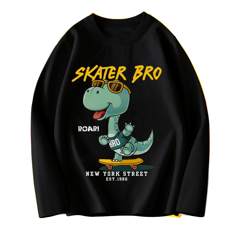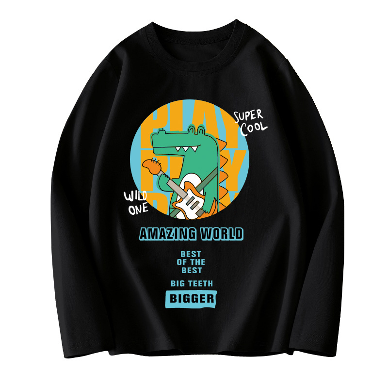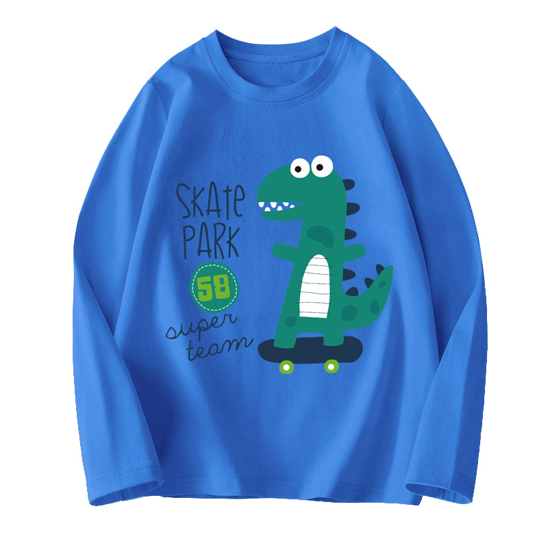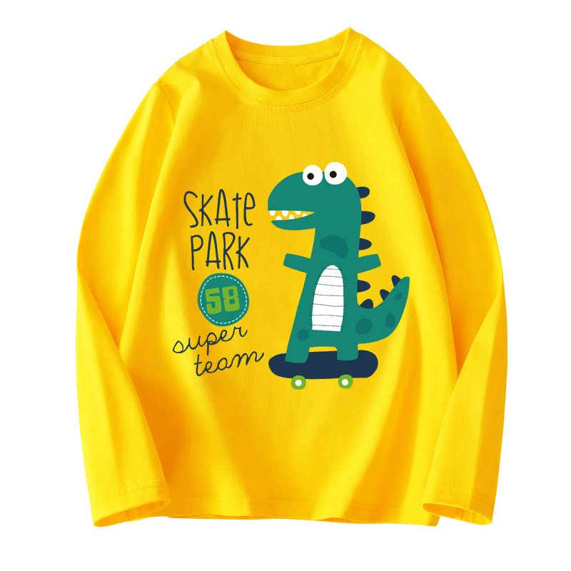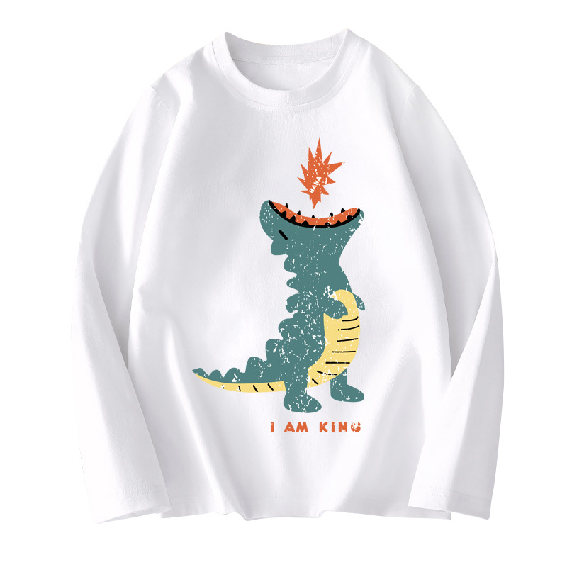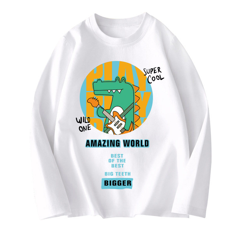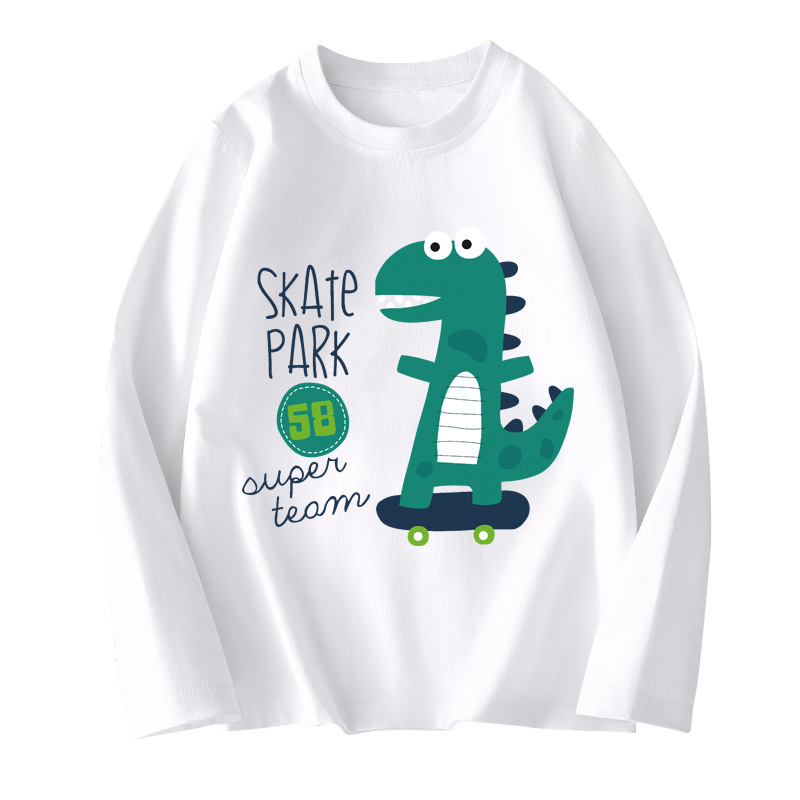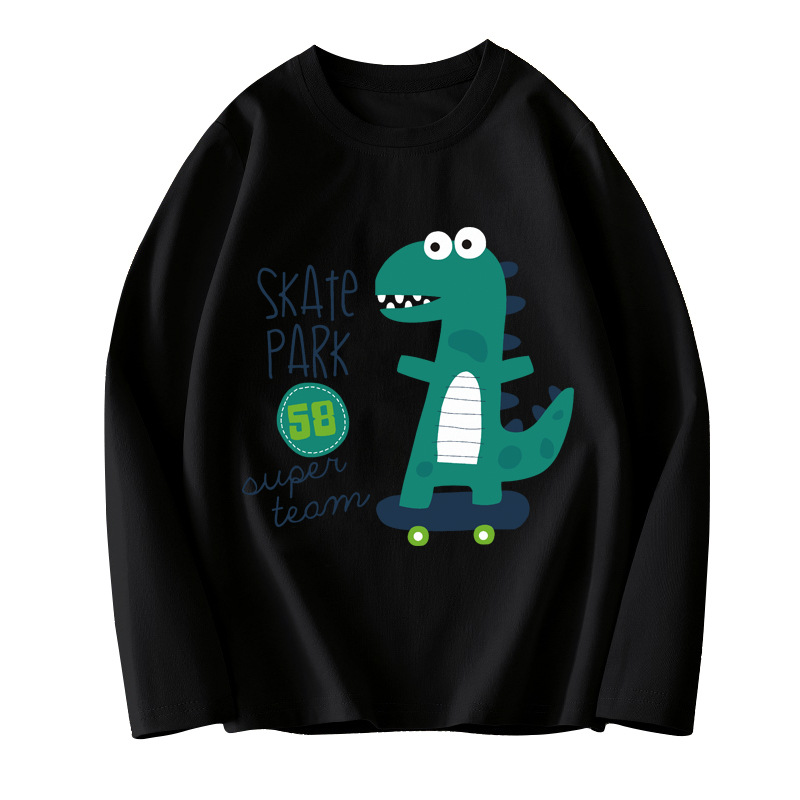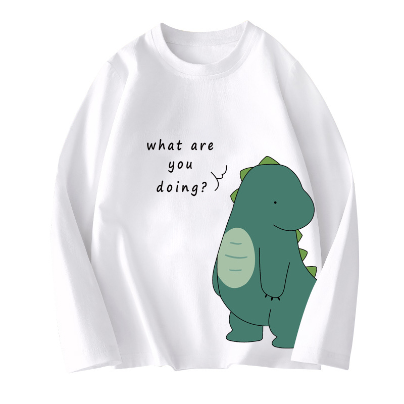 순수 코튼 긴팔 티셔츠 2025 봄 신작 아동 의류 만화 공룡 프린트 라운드 넥 탑 바닥 크로스 보더 도매스토어 가기