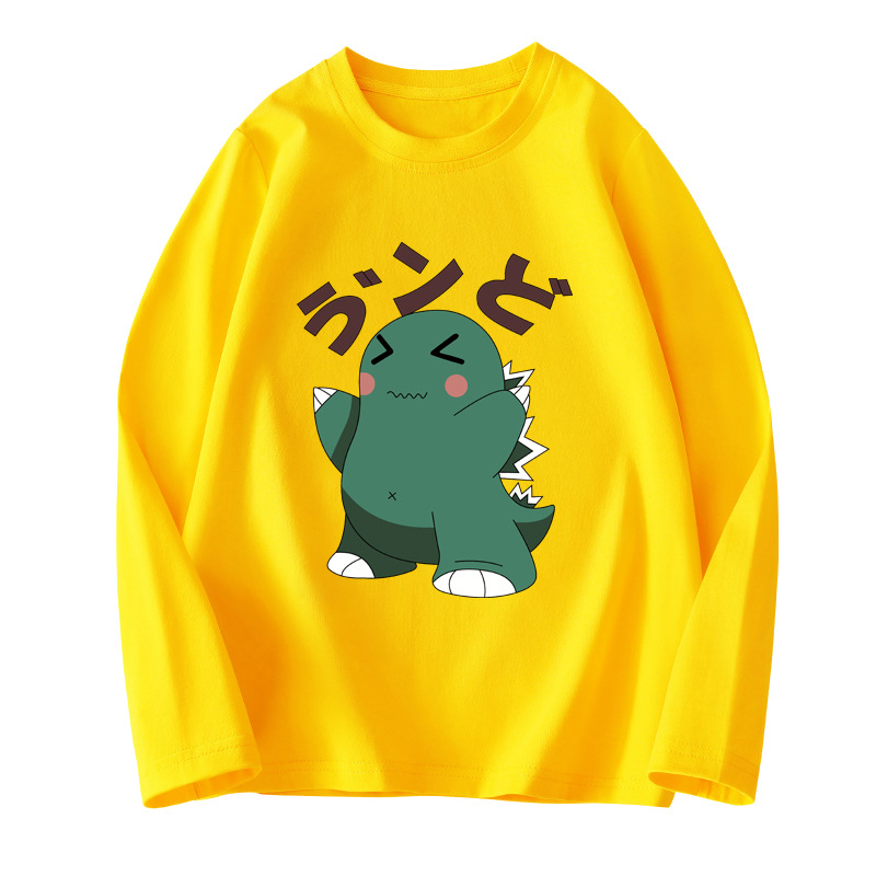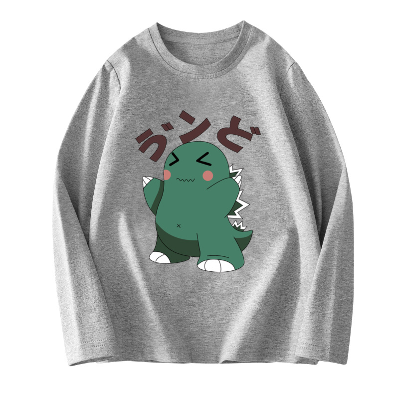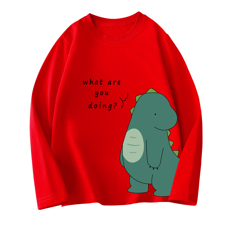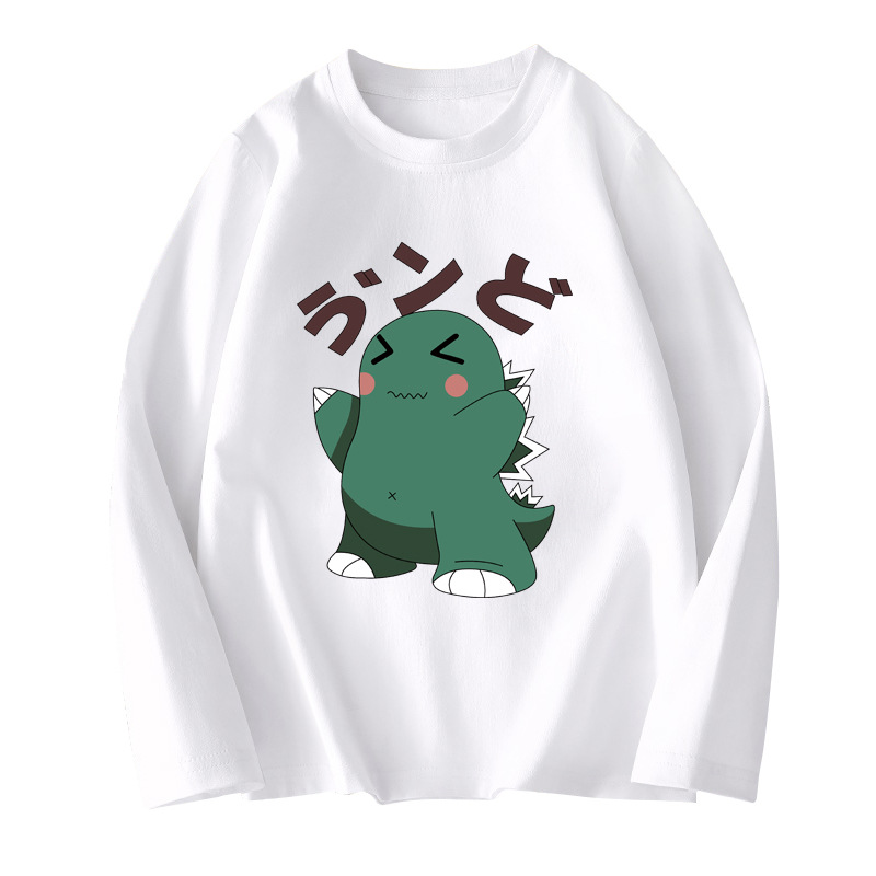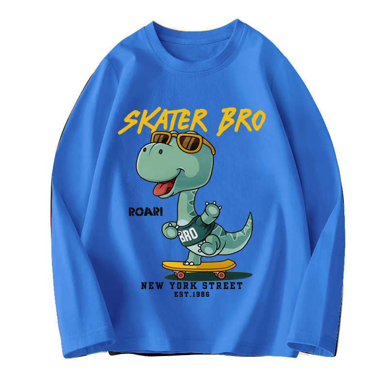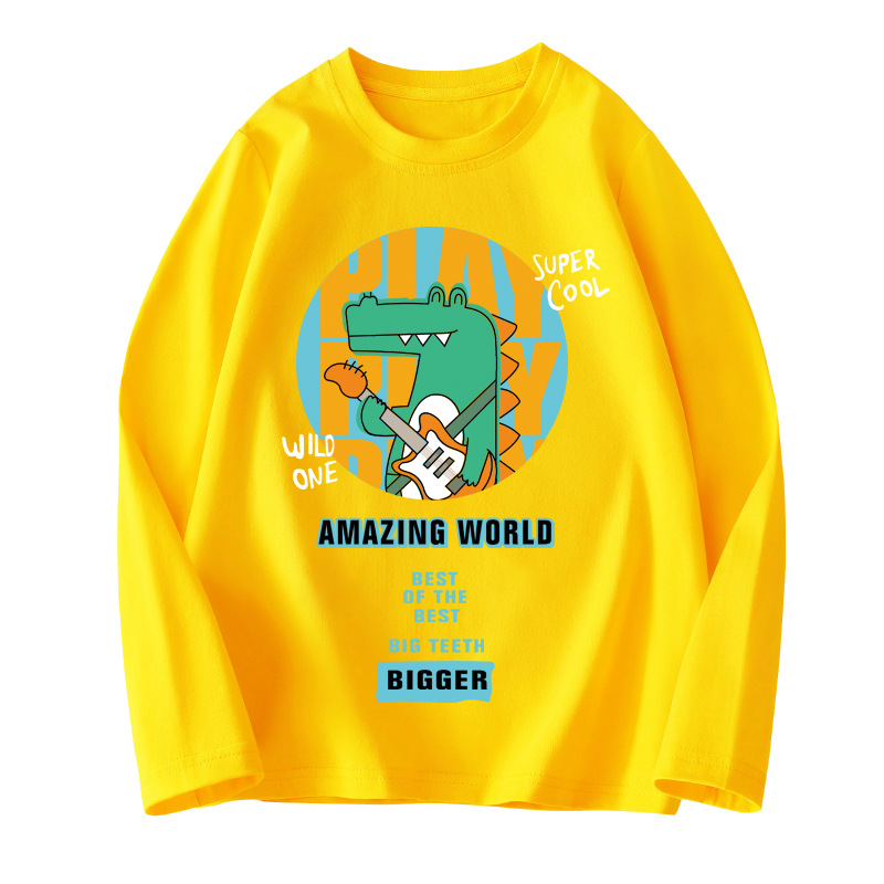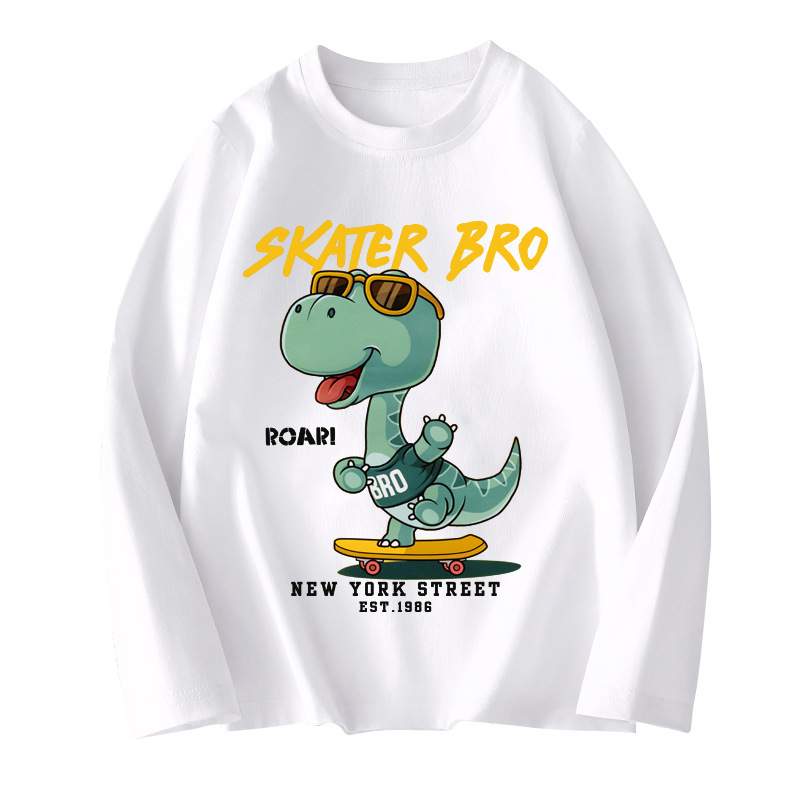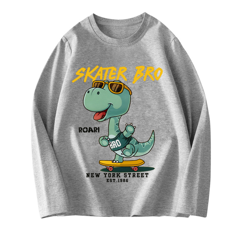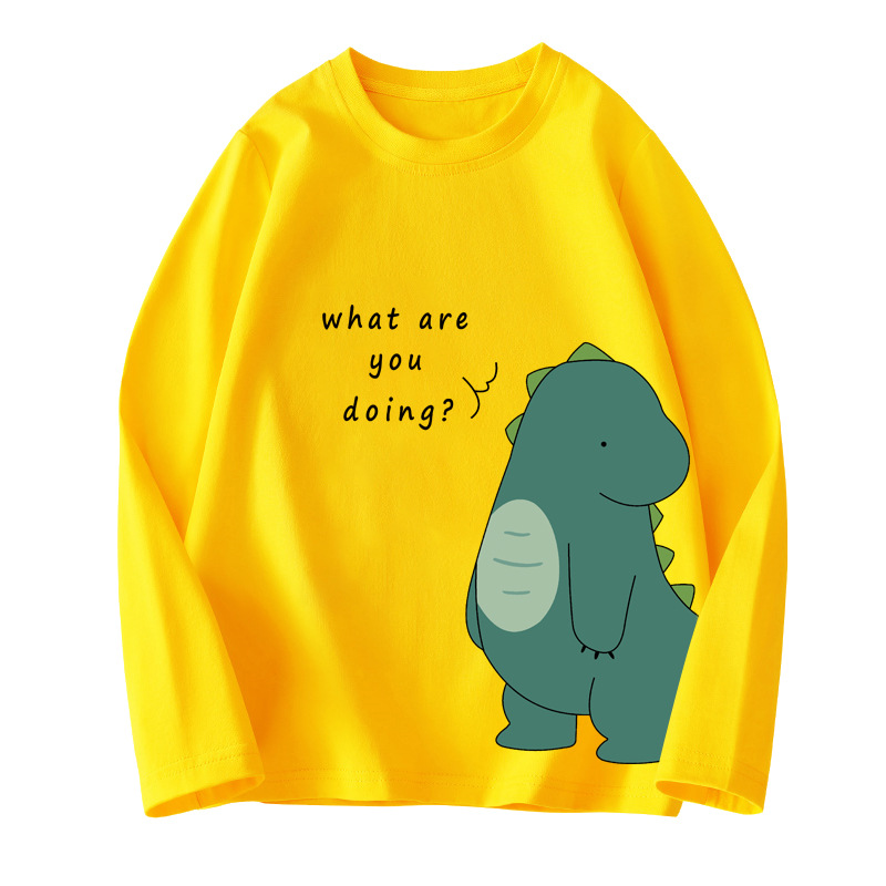 순수 코튼 긴팔 티셔츠 2025 봄 신작 아동 의류 만화 공룡 프린트 라운드 넥 탑 바닥 크로스 보더 도매스토어 가기