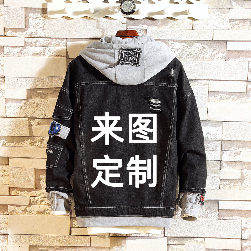 2 차원 가짜 두 남성과 여성 학생 주위에 DIY 애니메이션 데님 코트 cos 옷 게임을 만들려면스토어 가기