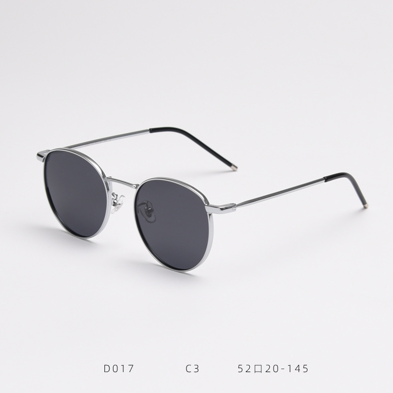 D017 한국식 편광 금속 선글라스 여성용 라운드 프레임 빈티지 Instagram 스타일 남성용 맞춤 안경