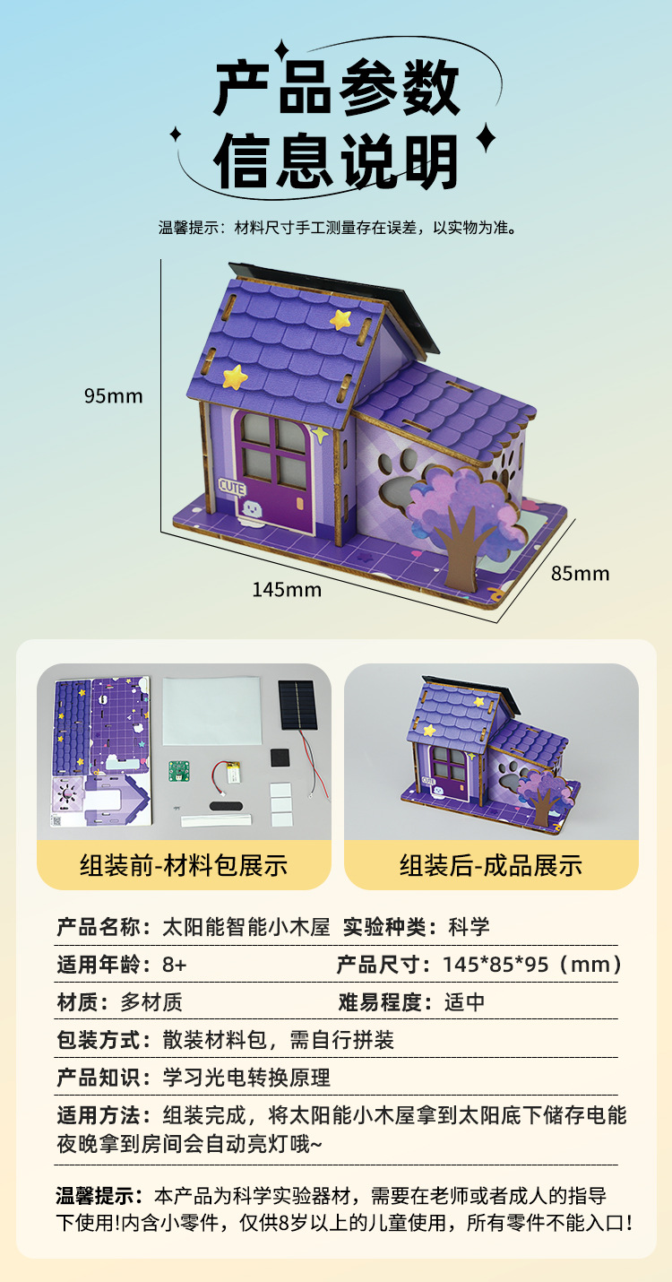 DIY 태양열 다채로운 오두막 모델 과학 실험 증기 기술 소규모 생산 학생 과학 및 교육 장난감