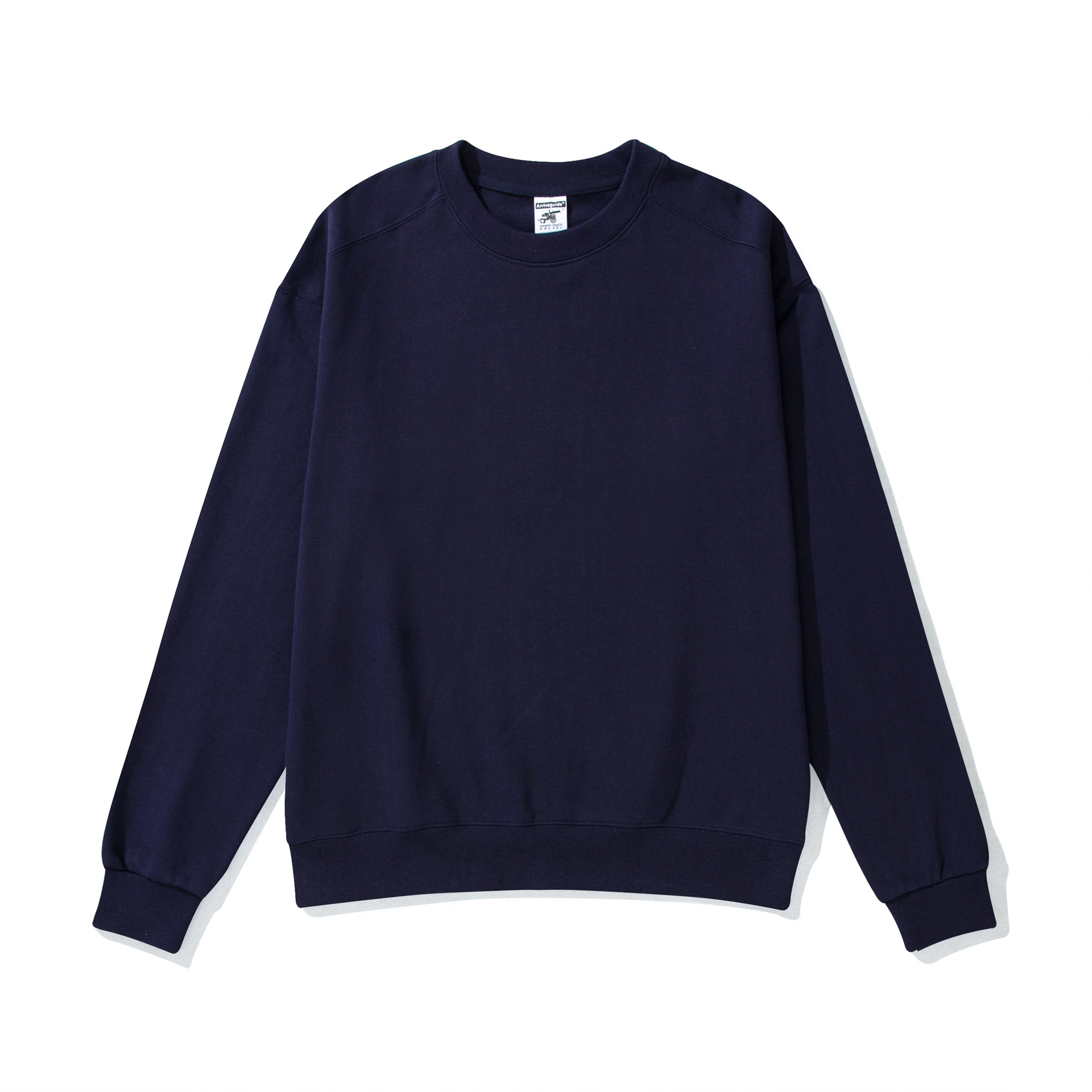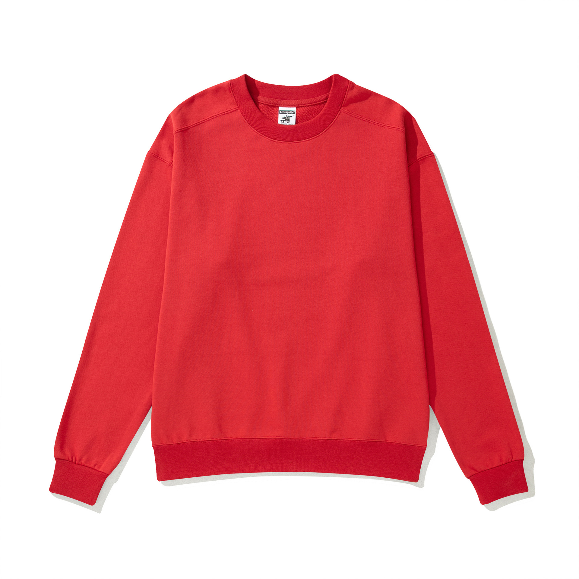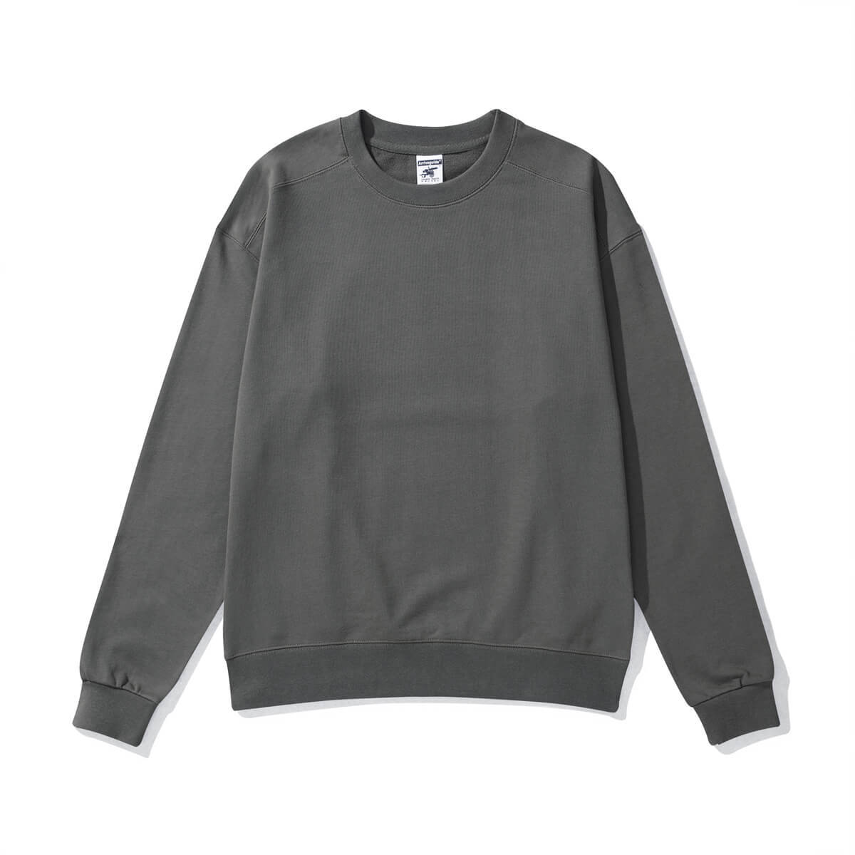AG488 무거운면 테리 라운드 넥 스웨터 단색 무지 레트로 느슨한 긴 소매 자수 사용자 정의 로고