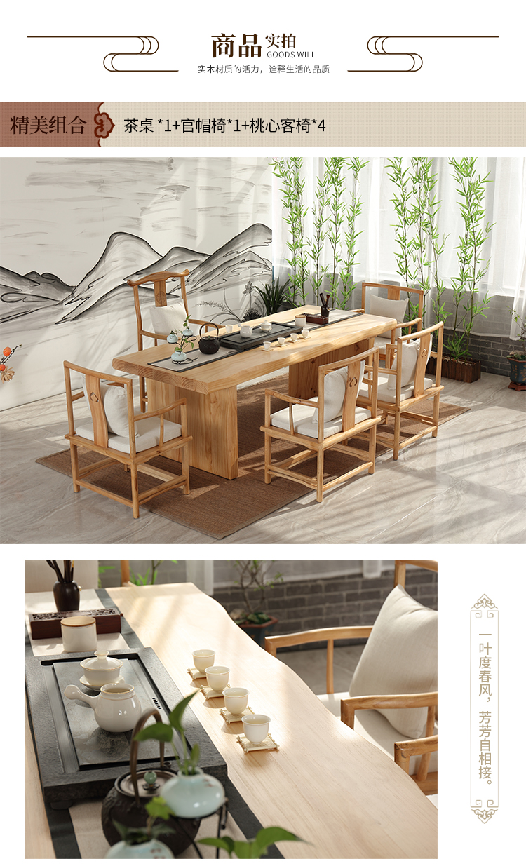 현대 간단한 단단한 나무 커피 테이블 사무실 회의 쿵푸 차 테이블과 의자 조합 홈 차 만들기 다도 차 테이블스토어 가기