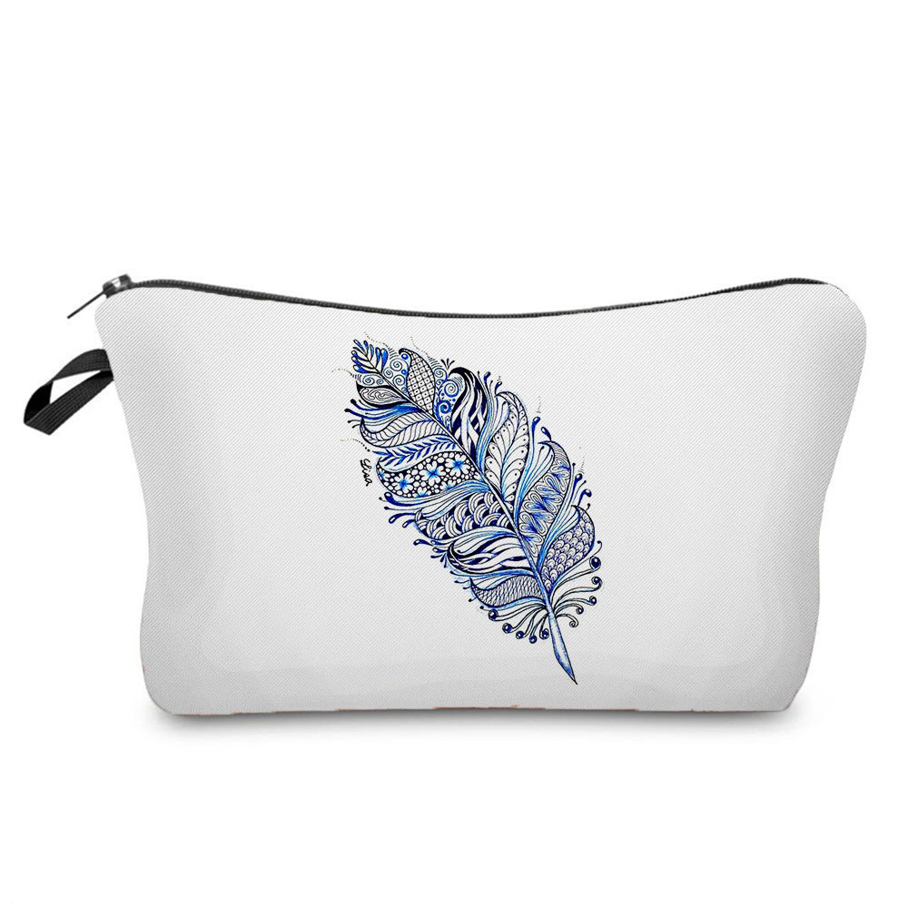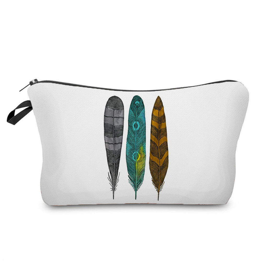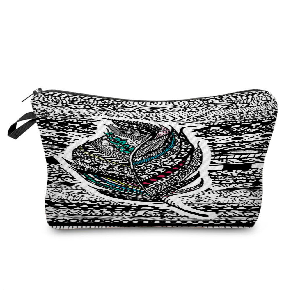 신상품 에스닉 깃털 인쇄 재고 가방 여행 보관 가방 화장품 가방 소프트
