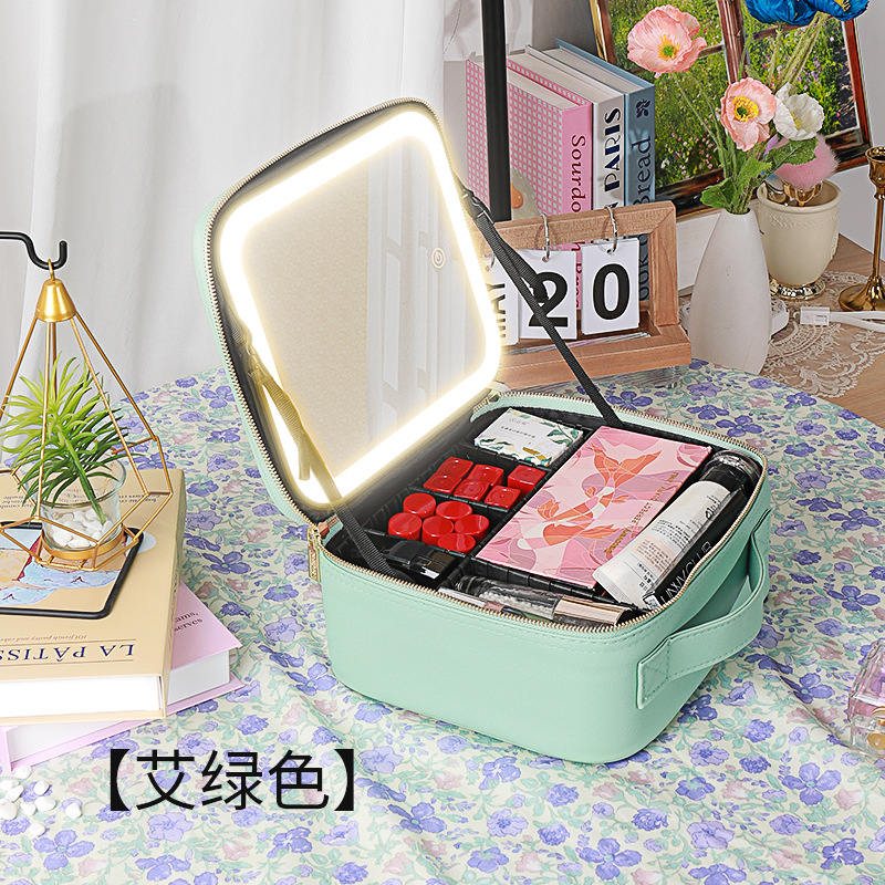 LED 램프 거울이있는 화장품 가방 대용량 여행 휴대용 화장품 보관 가방 여성용 데스크탑 보관함스토어 가기