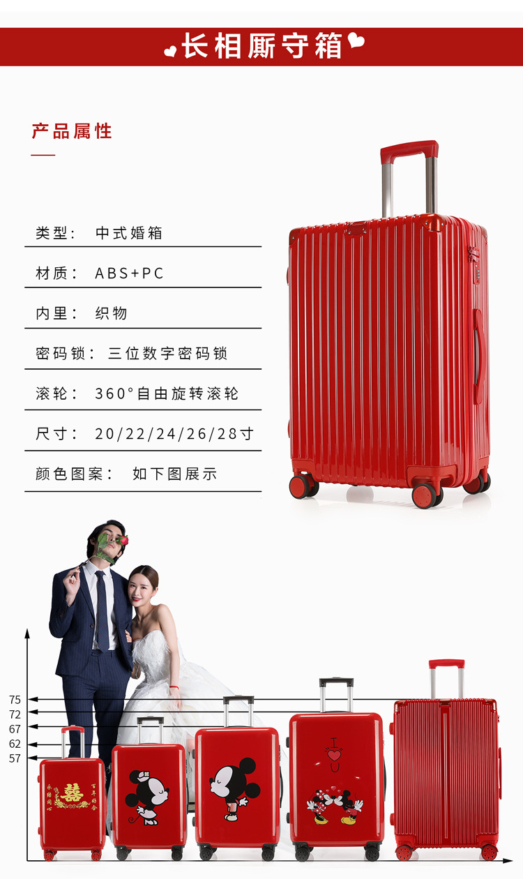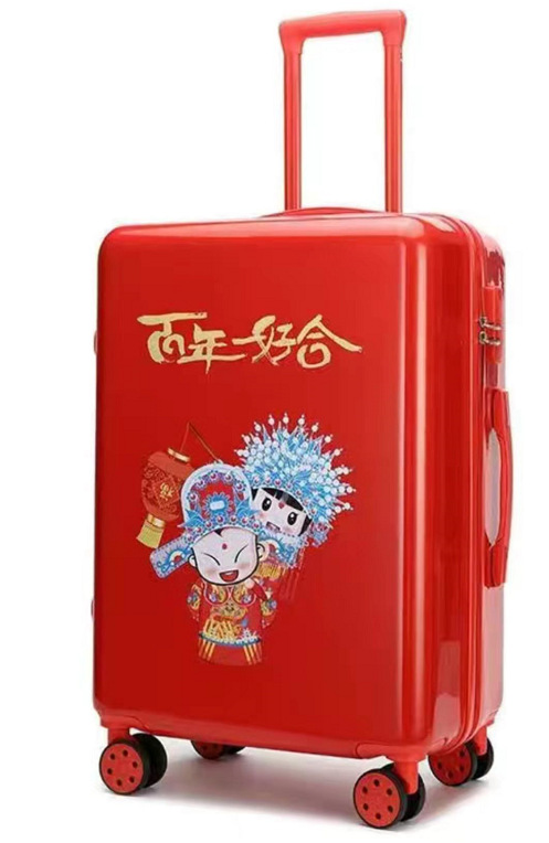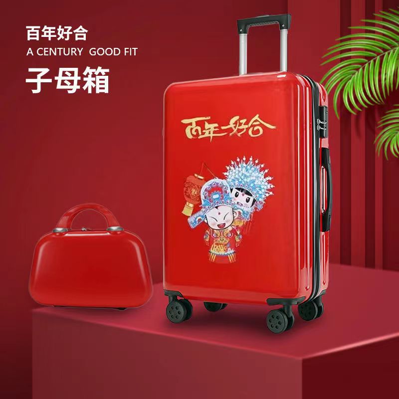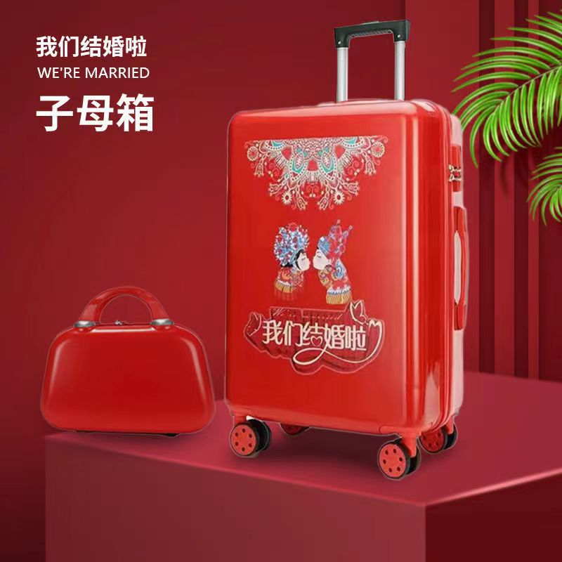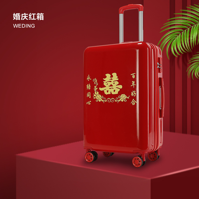레드 웨딩 동반 수하물 신부 웨딩 트롤리 케이스 여성용 여행 가방 암호 가죽 케이스 지참금 케이스 쌍스토어 가기