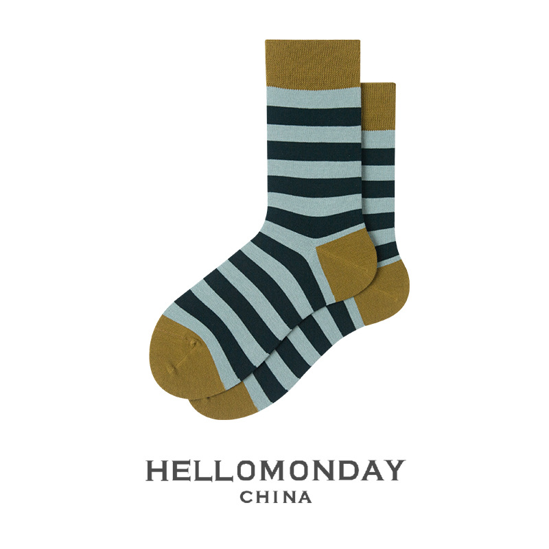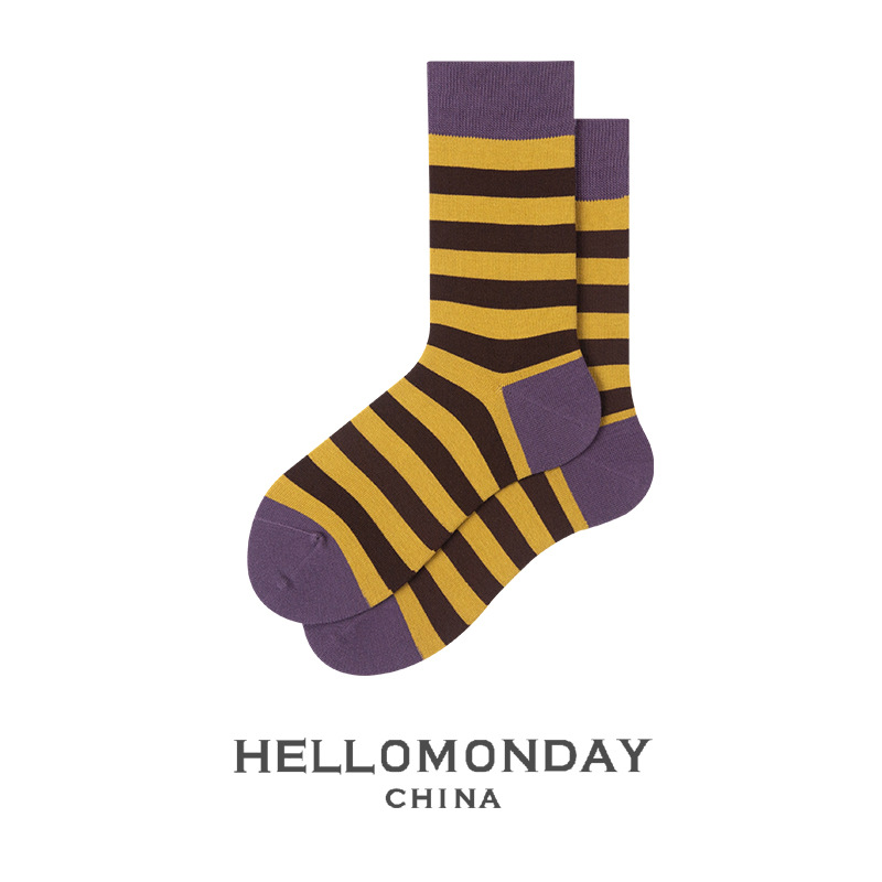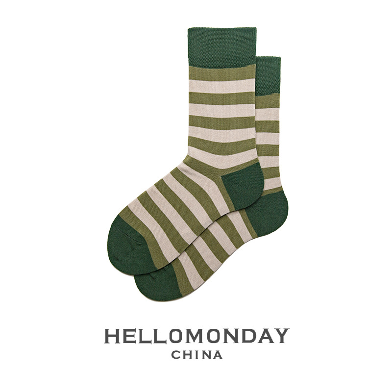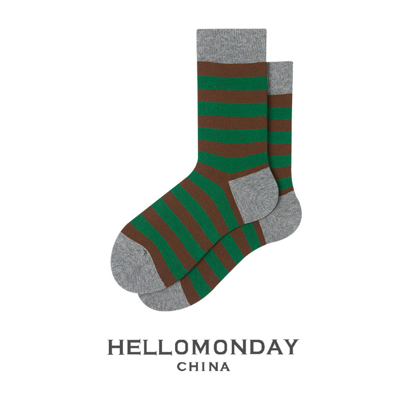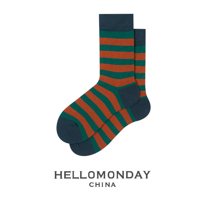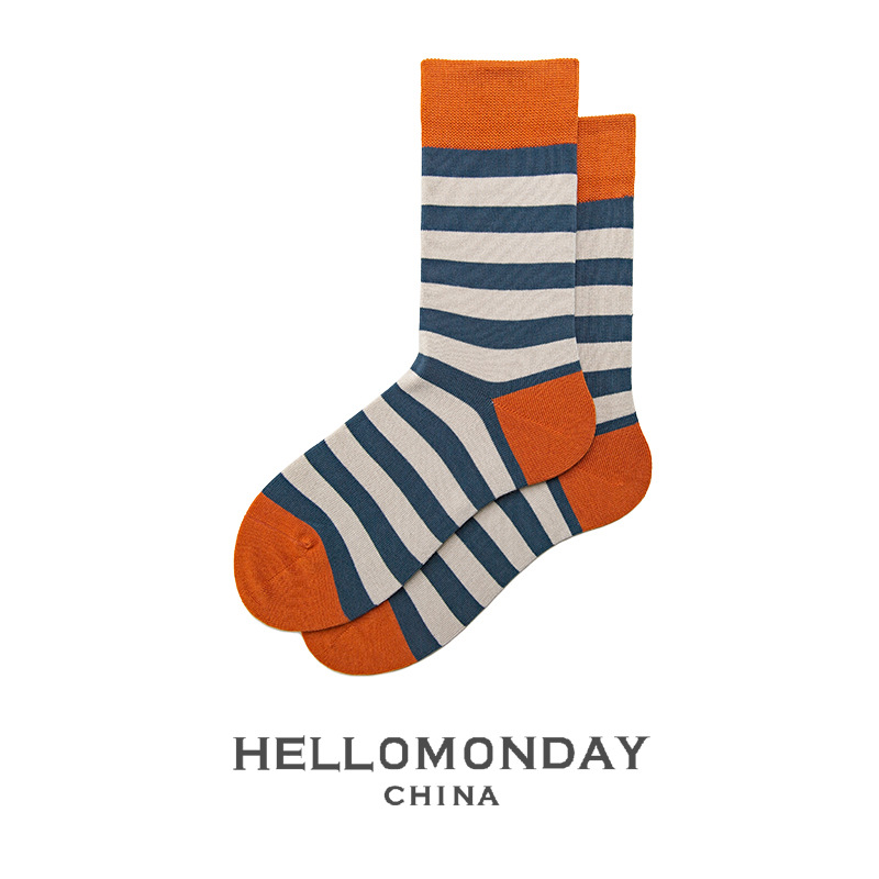 34370 헬로먼데이 양말 남성 패션 스트라이프 튜브 양말 한국 양말 여성 캐주얼 면 양말 학업 스타일