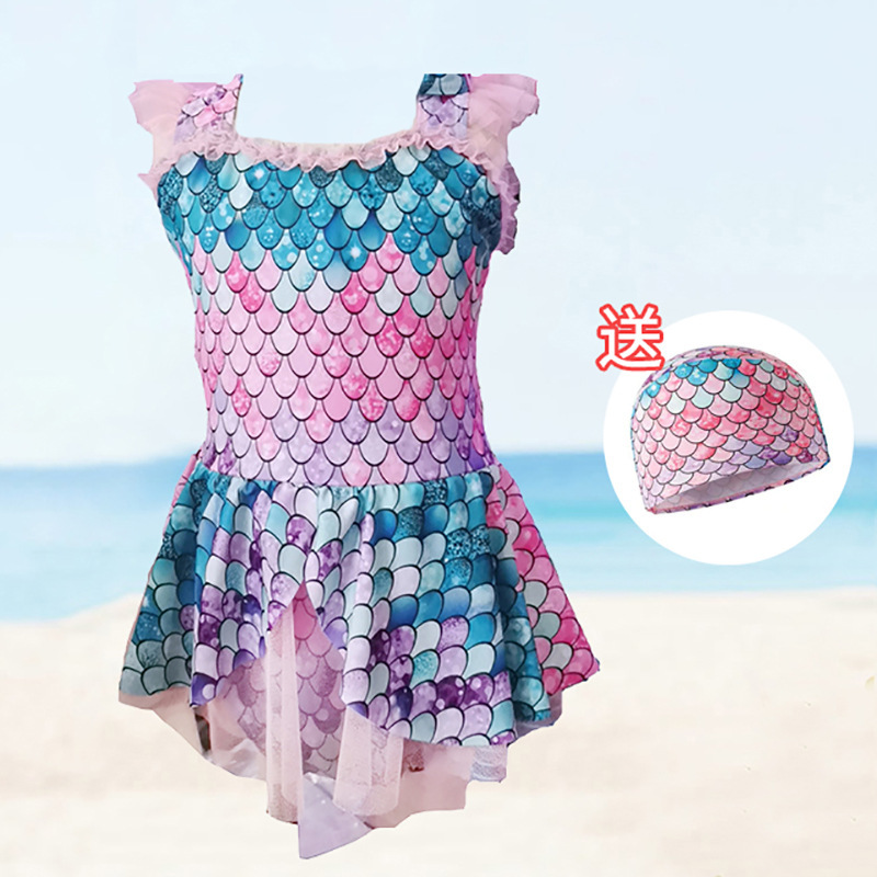 새로운 스타일의 아동용 수영복 원피스 드레스형 속건성 인어 비늘 디자인 중대형 어린이용 패셔너블하고 세련된 여아 수영복스토어 가기