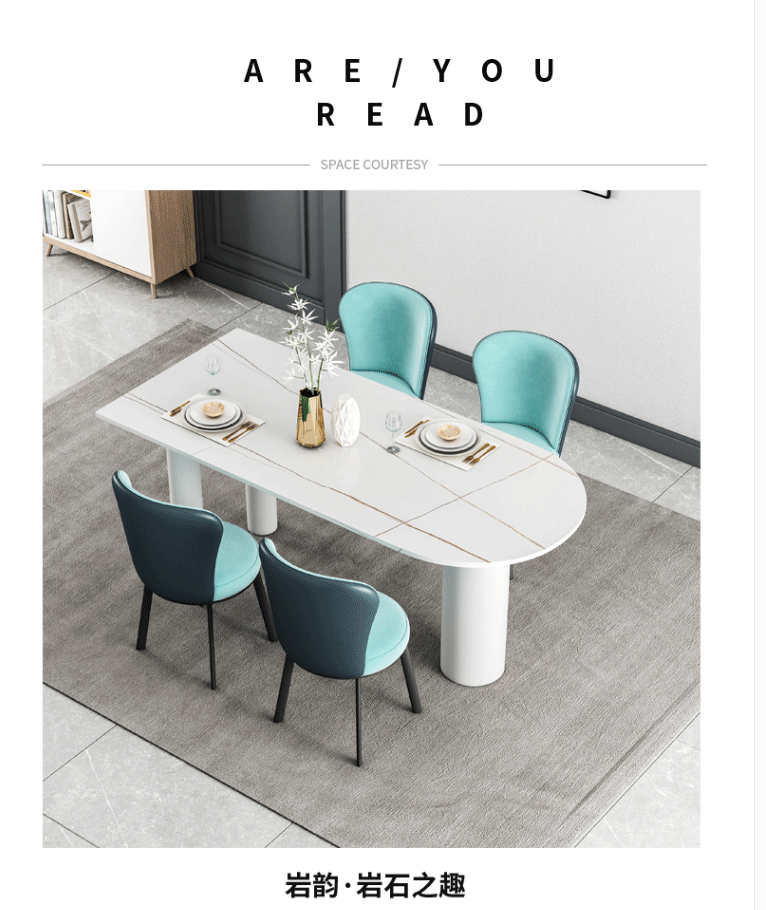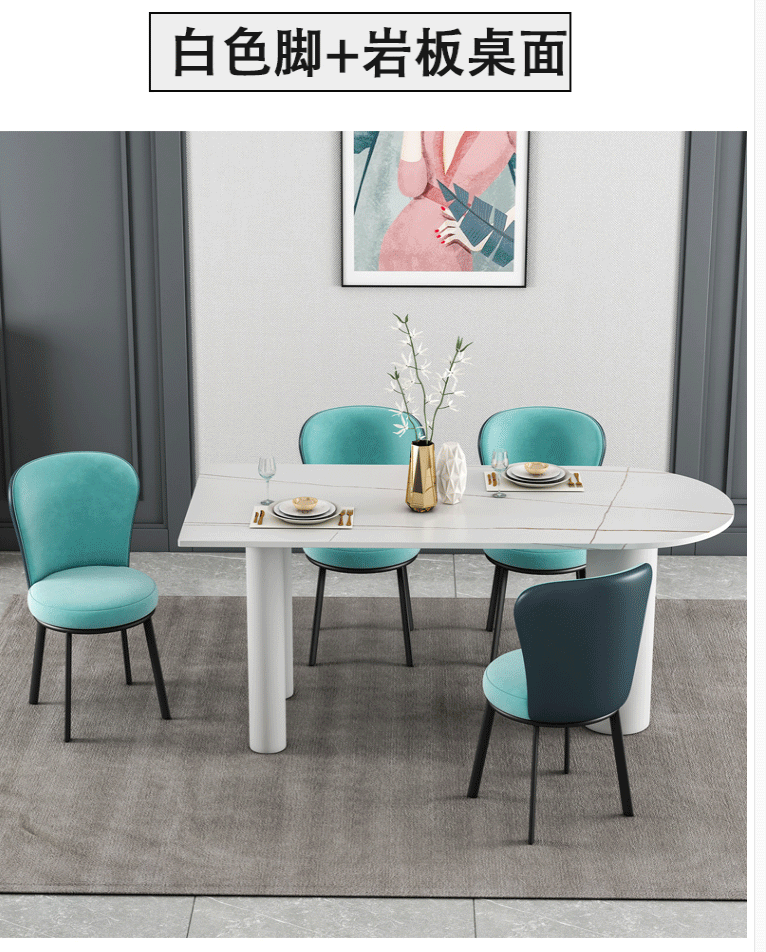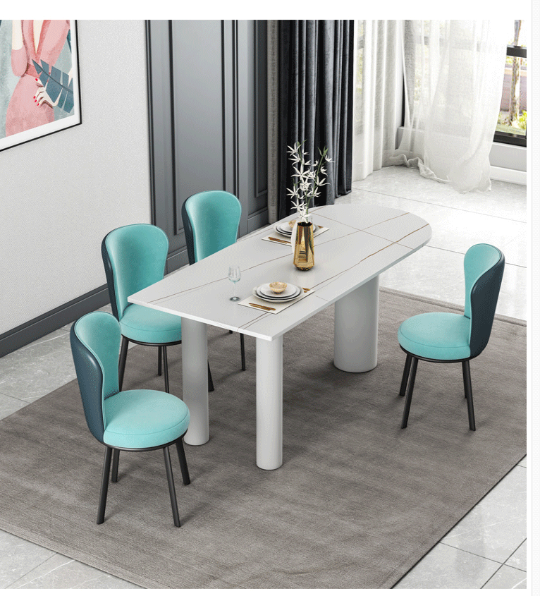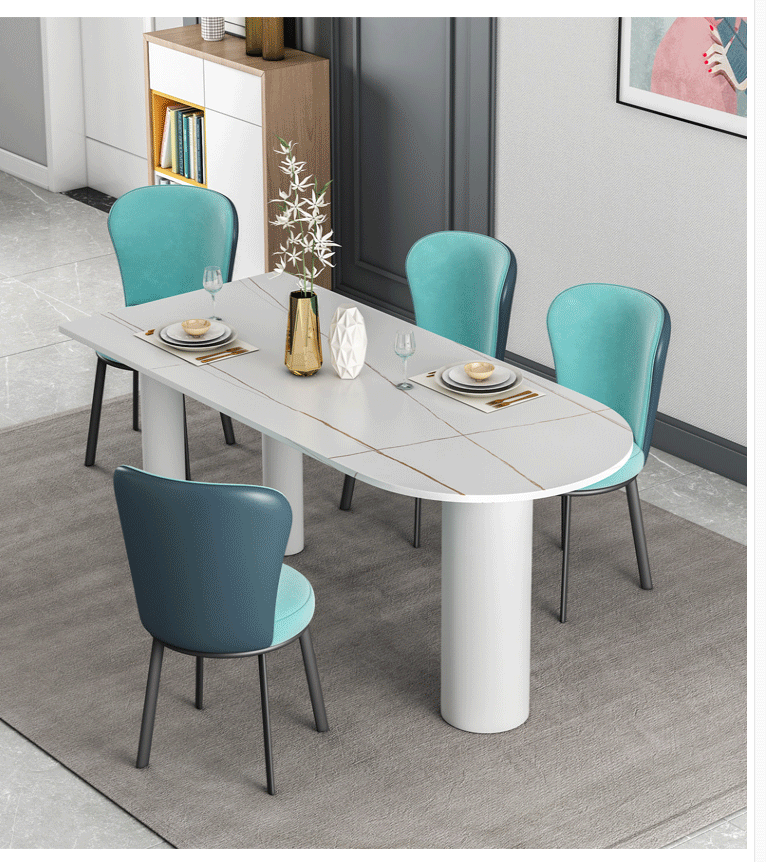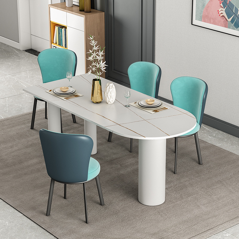 북유럽 조명 럭셔리 락 플레이트 식탁 및 의자 조합 작은 아파트 가정용 거실 화이트 식탁 디자이너 타원형 테이블스토어 가기