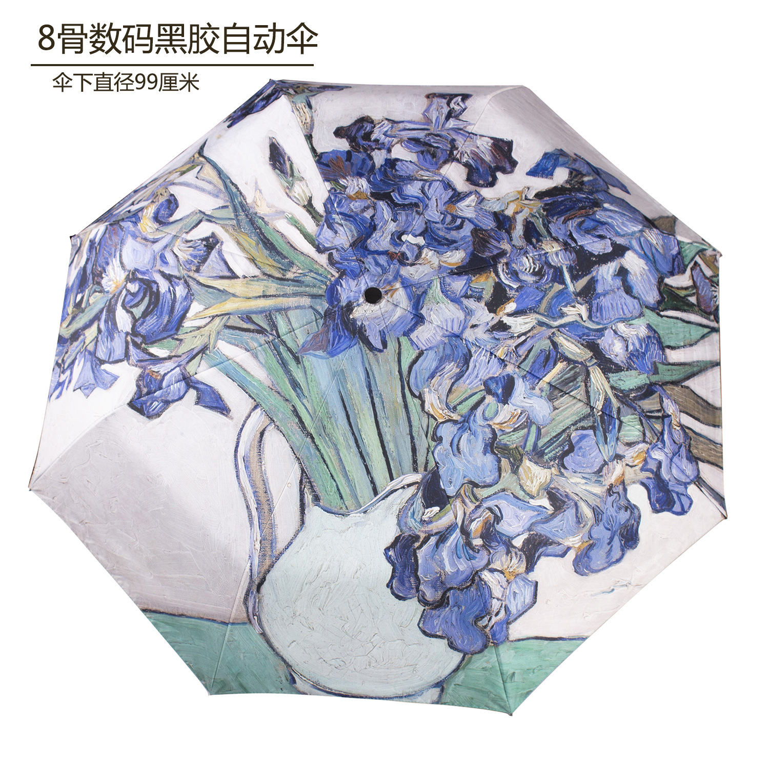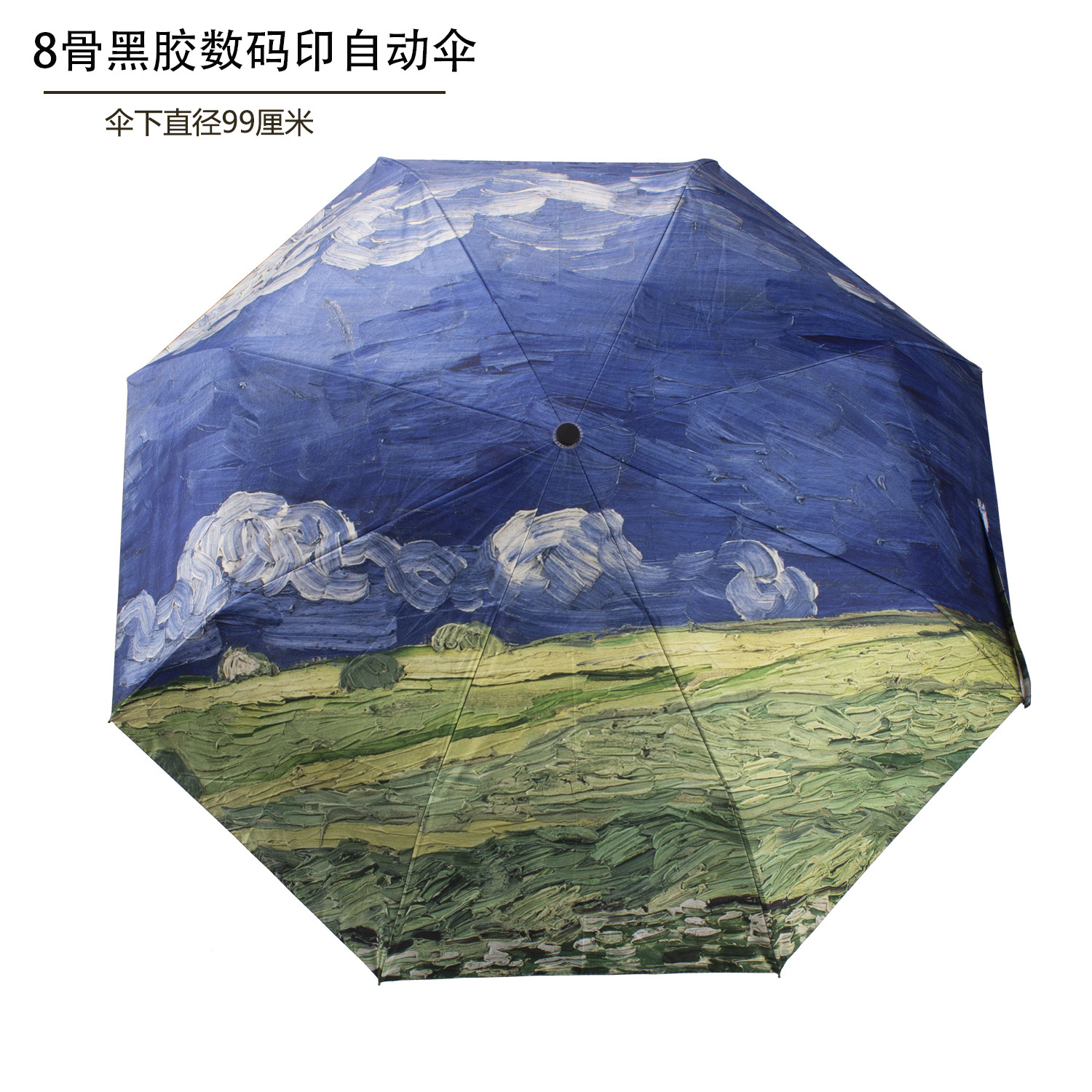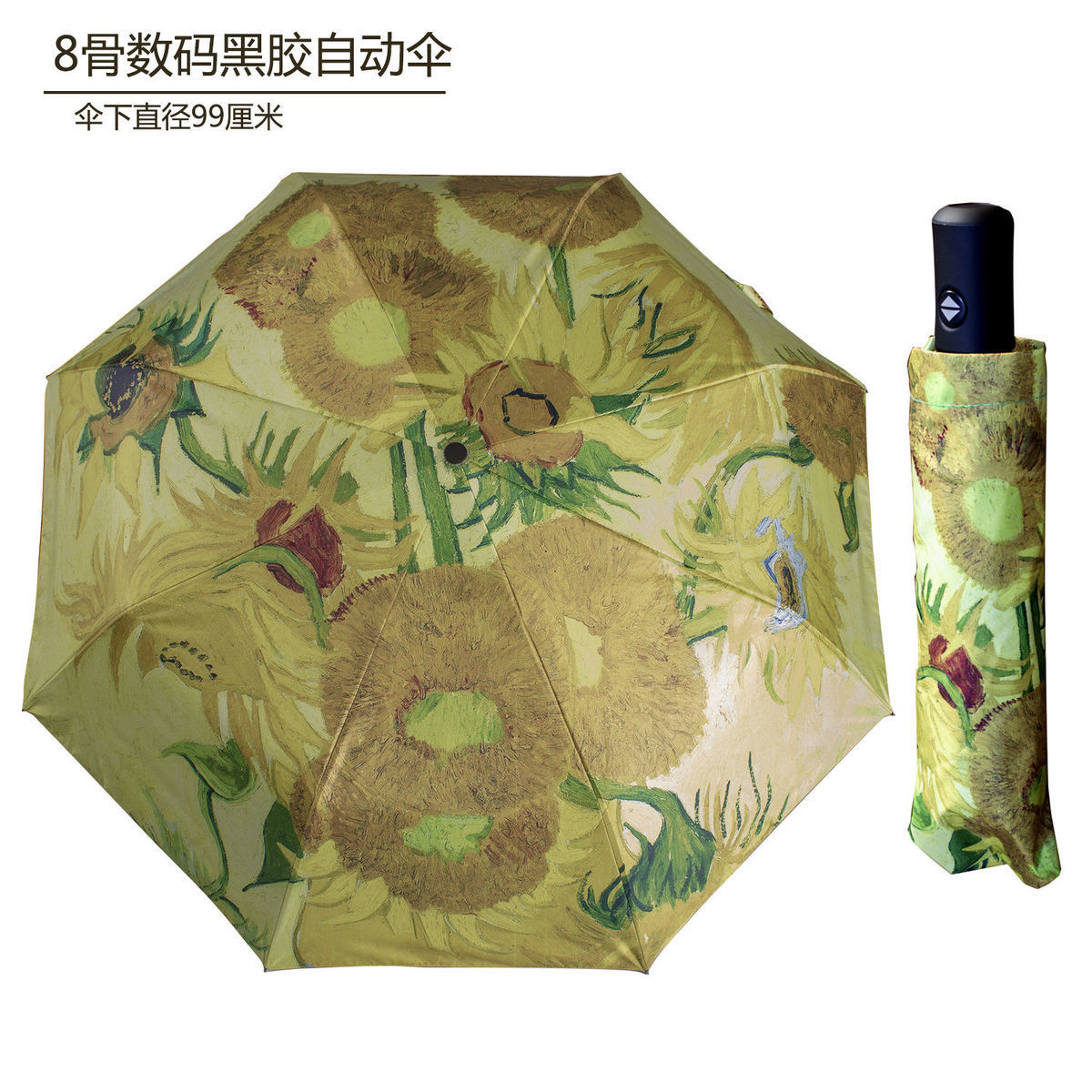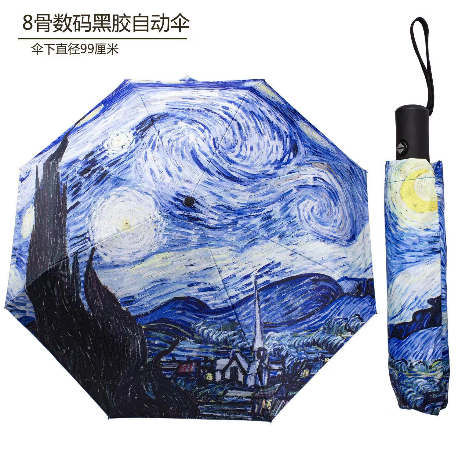 반 고흐 유화 우산 블랙 고무 자동 우산 자외선 차단제 접는 우산 디지털 인쇄 우산 작은 신선한 우산 인쇄 패턴