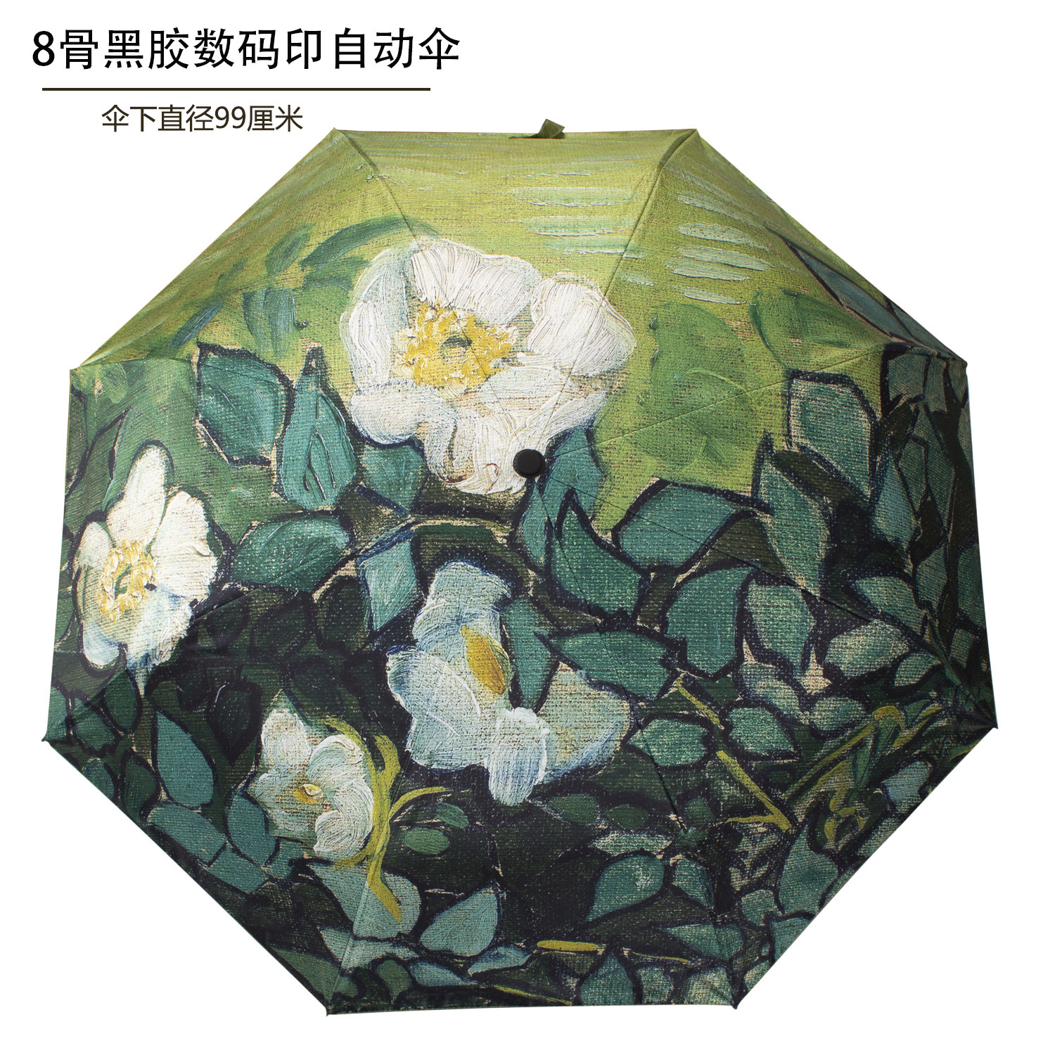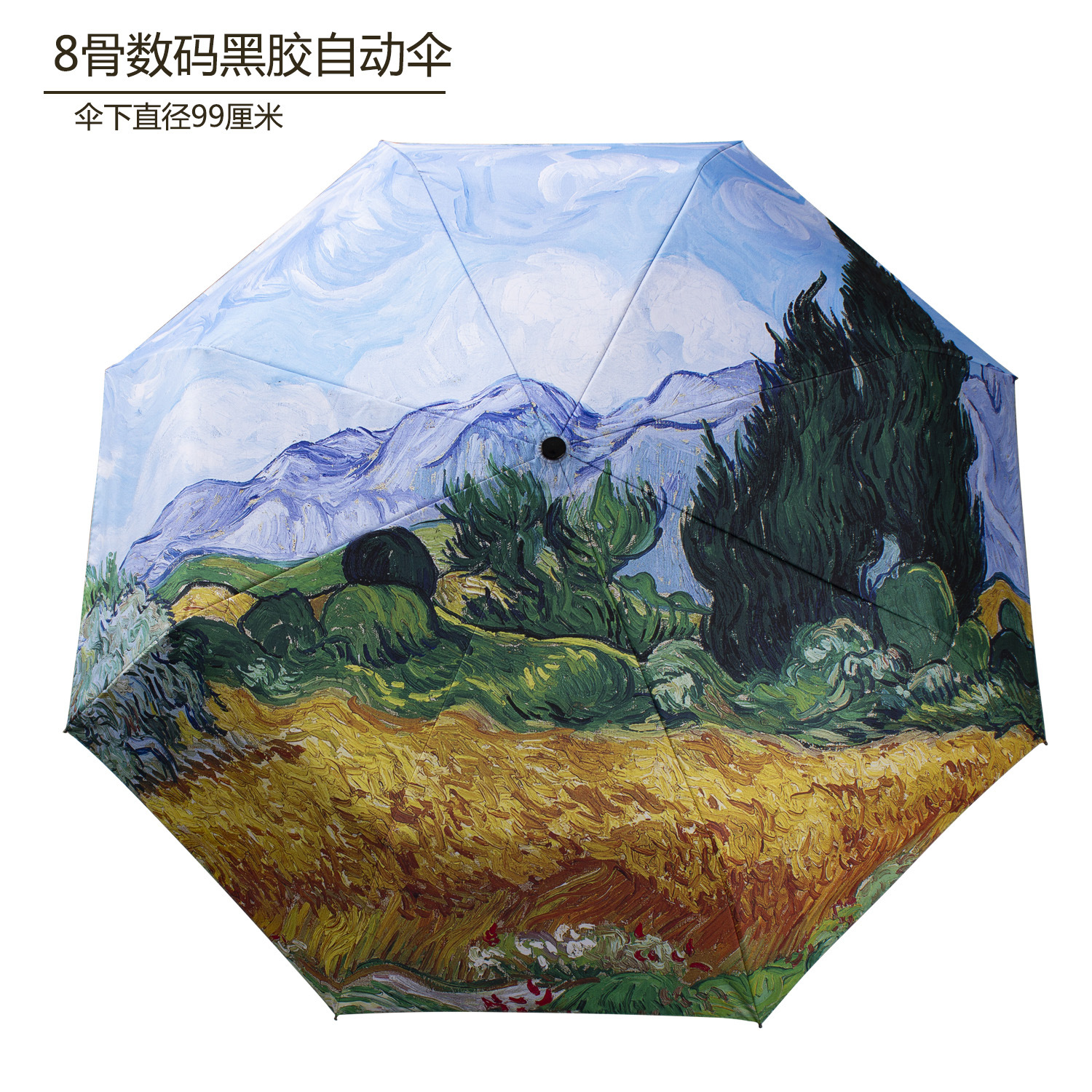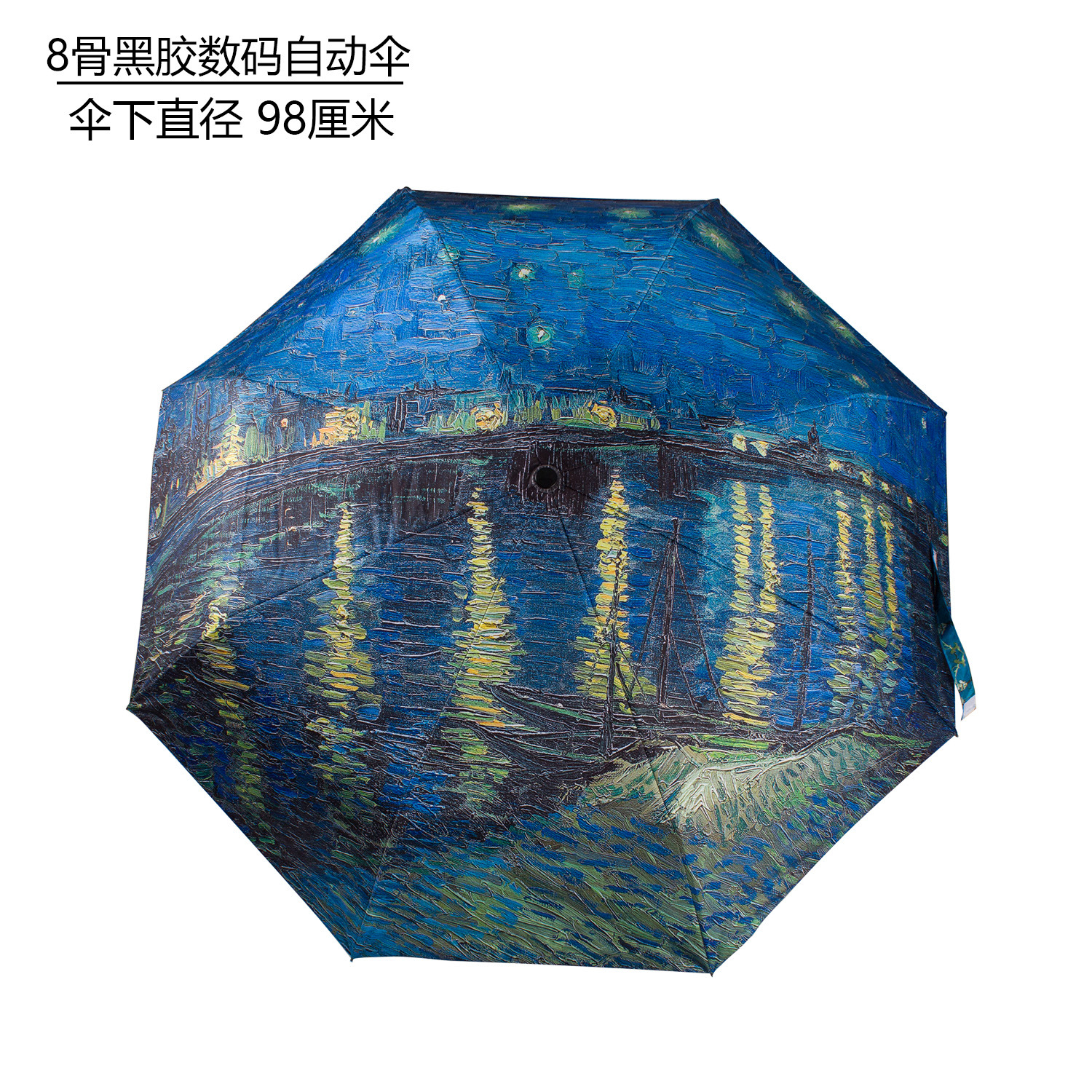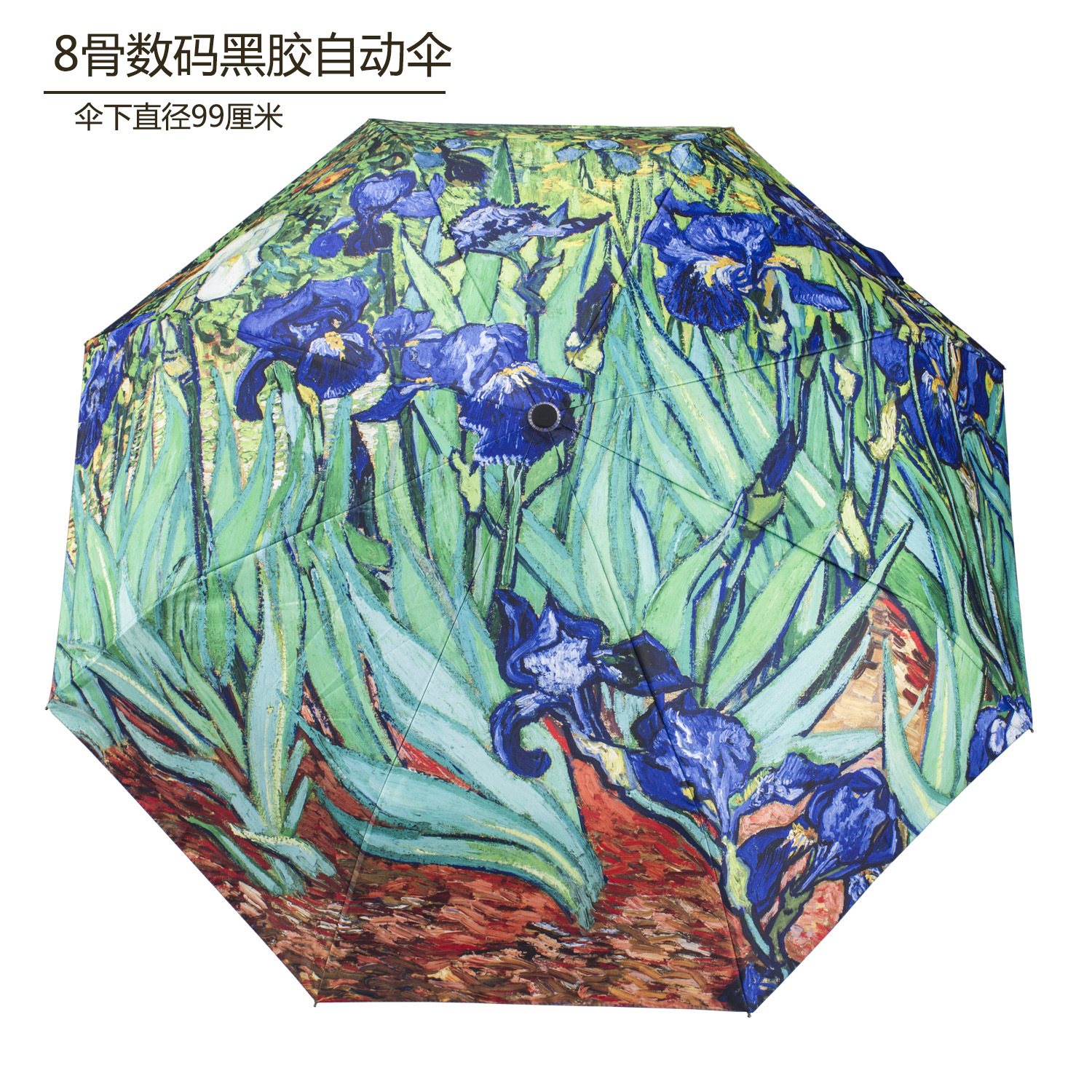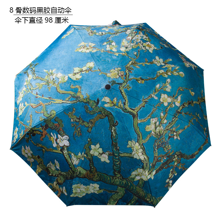 반 고흐 유화 우산 블랙 고무 자동 우산 자외선 차단제 접는 우산 디지털 인쇄 우산 작은 신선한 우산 인쇄 패턴