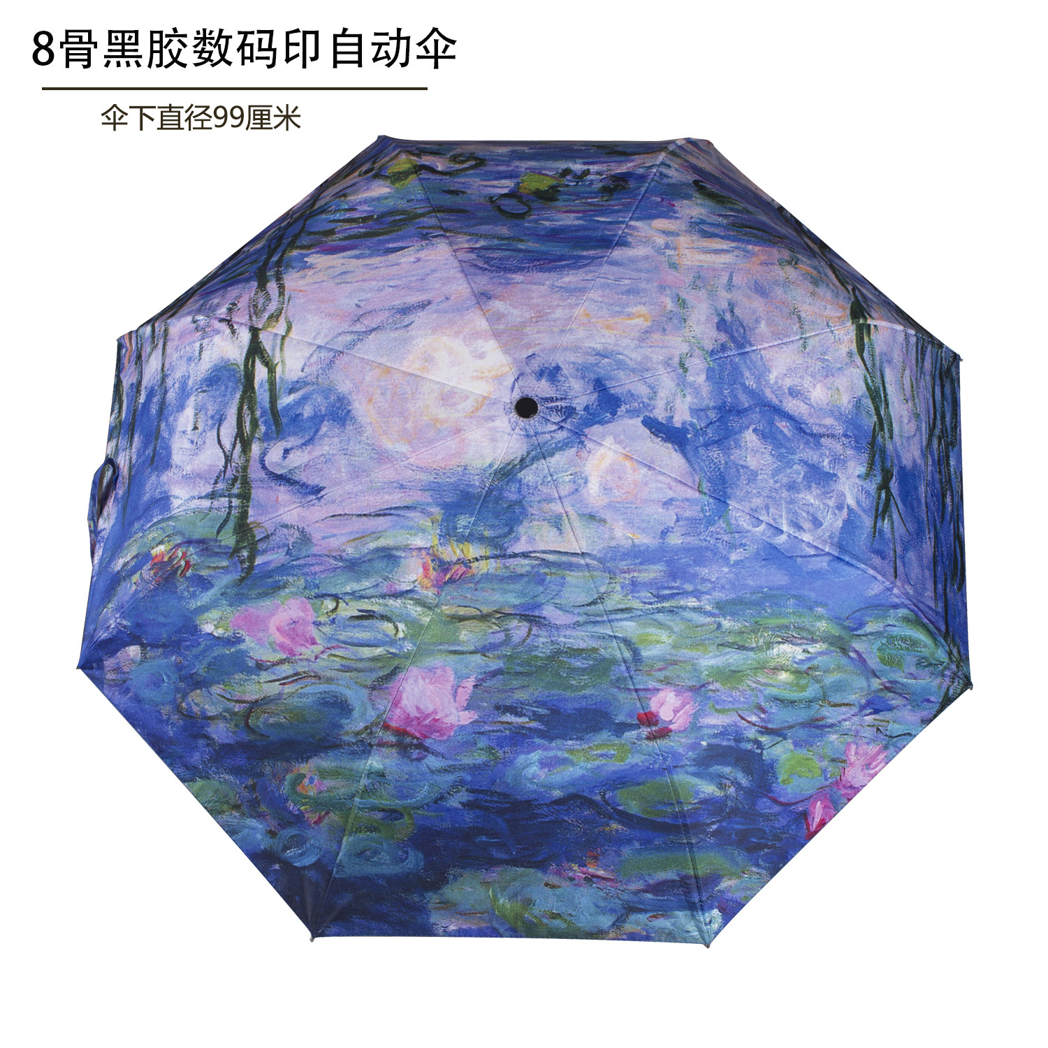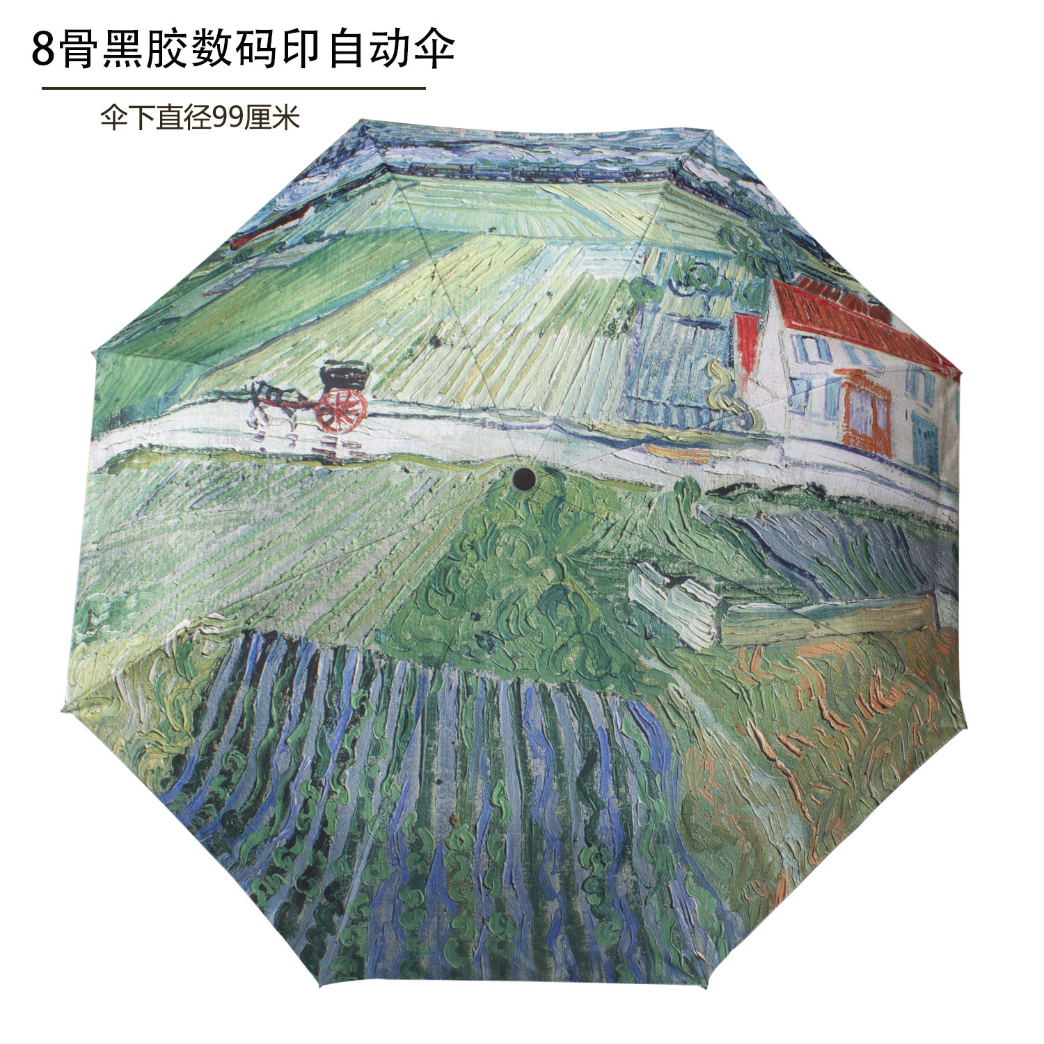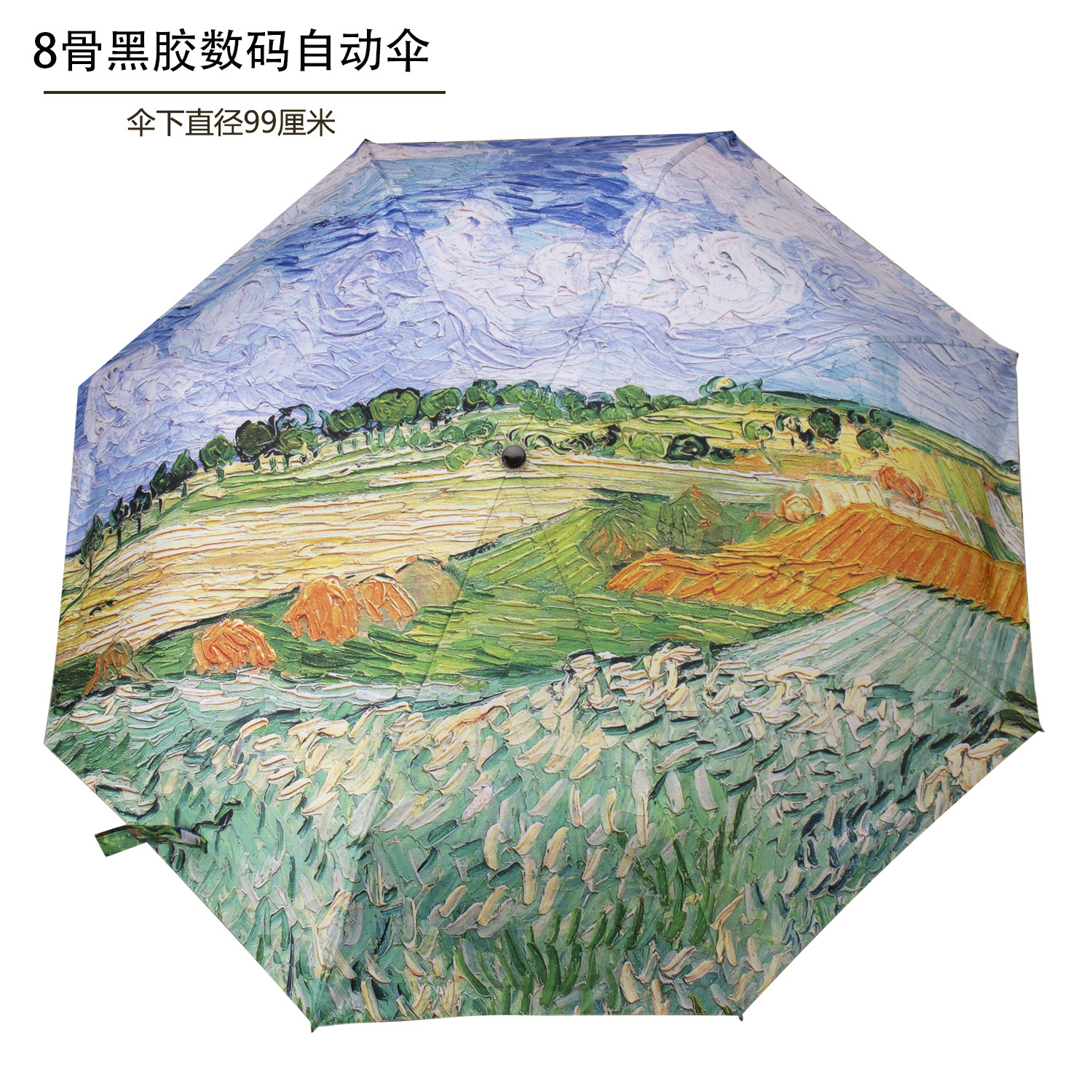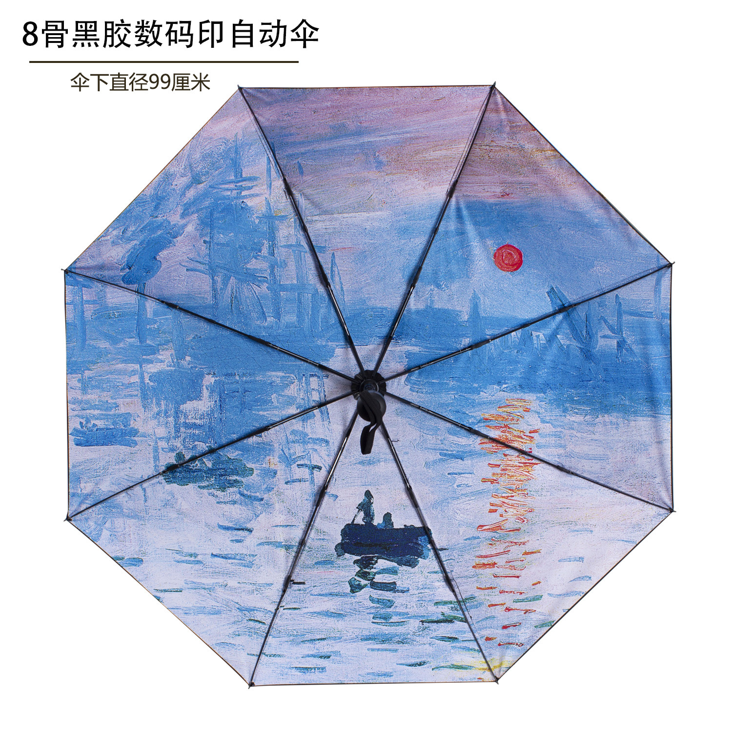 반 고흐 유화 우산 블랙 고무 자동 우산 자외선 차단제 접는 우산 디지털 인쇄 우산 작은 신선한 우산 인쇄 패턴