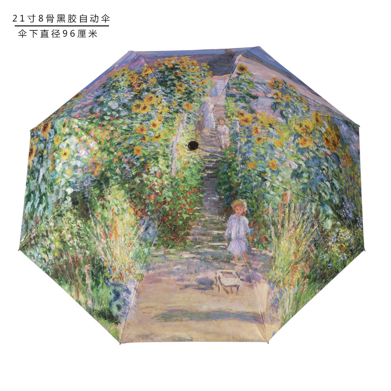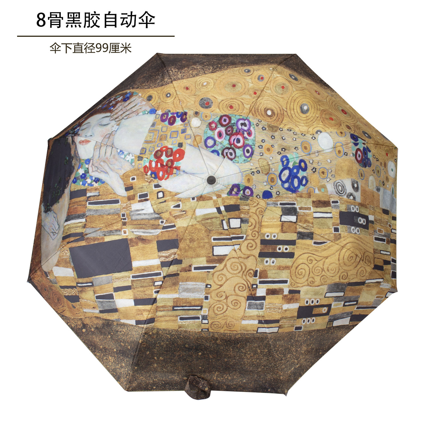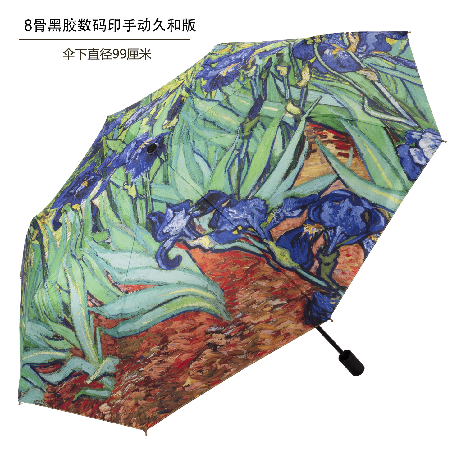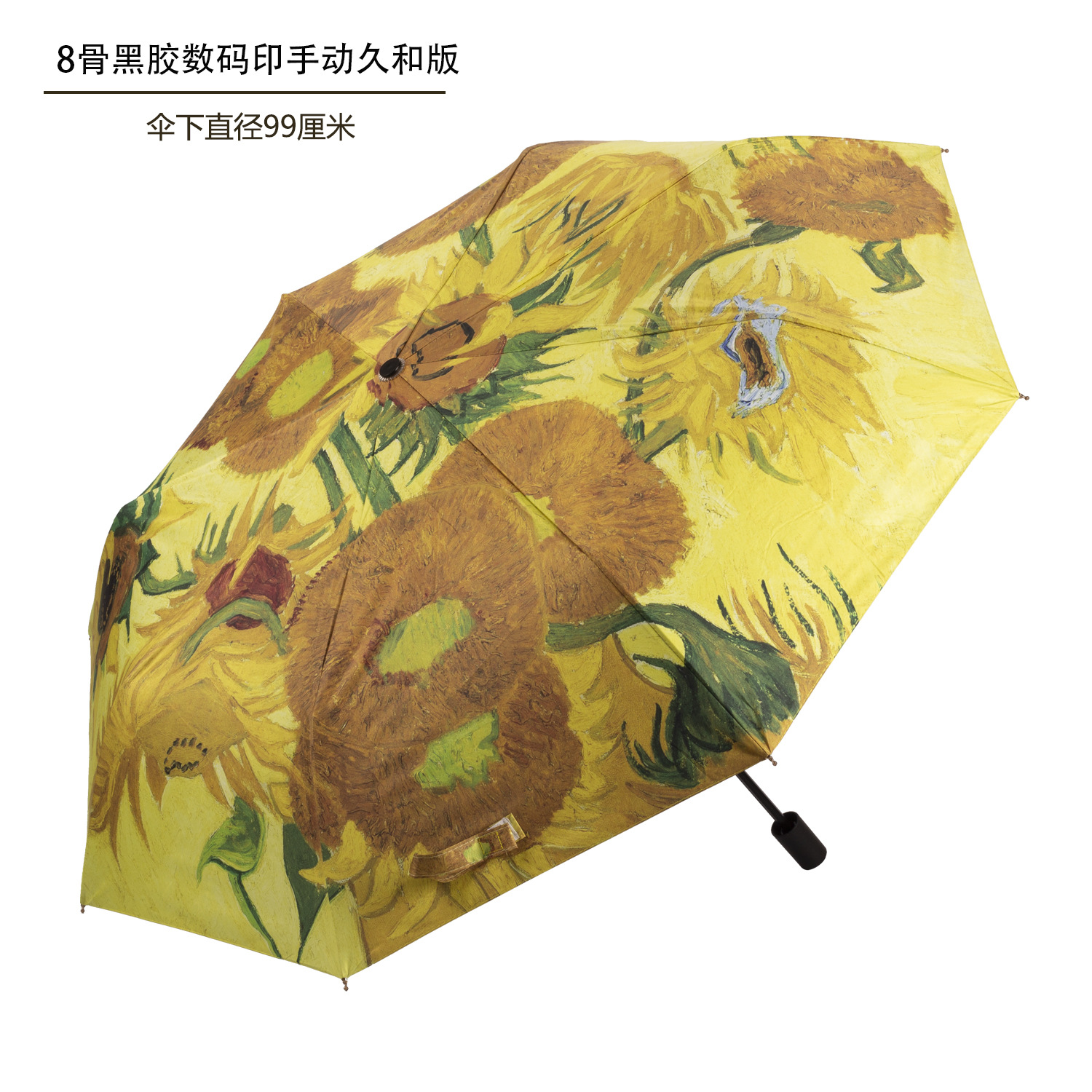 반 고흐 유화 우산 블랙 고무 자동 우산 자외선 차단제 접는 우산 디지털 인쇄 우산 작은 신선한 우산 인쇄 패턴