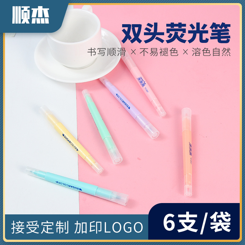 스폿 공급 6 컬러 더블 헤드 하이 라이터 세트 컬러 키 마커 마커 펜 어린이 그림 펜 도매