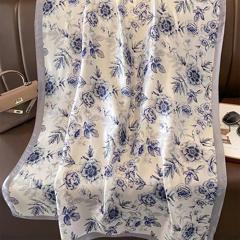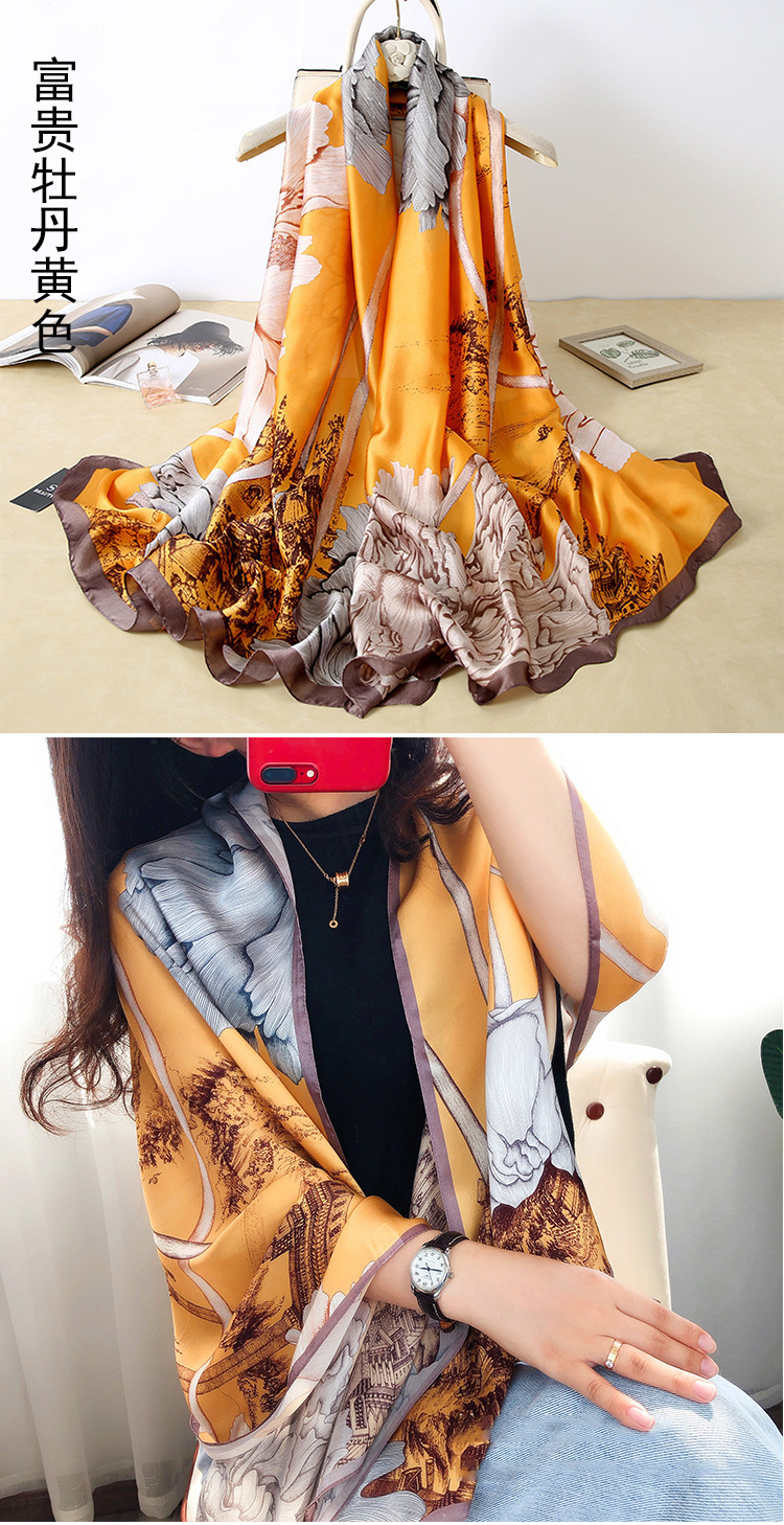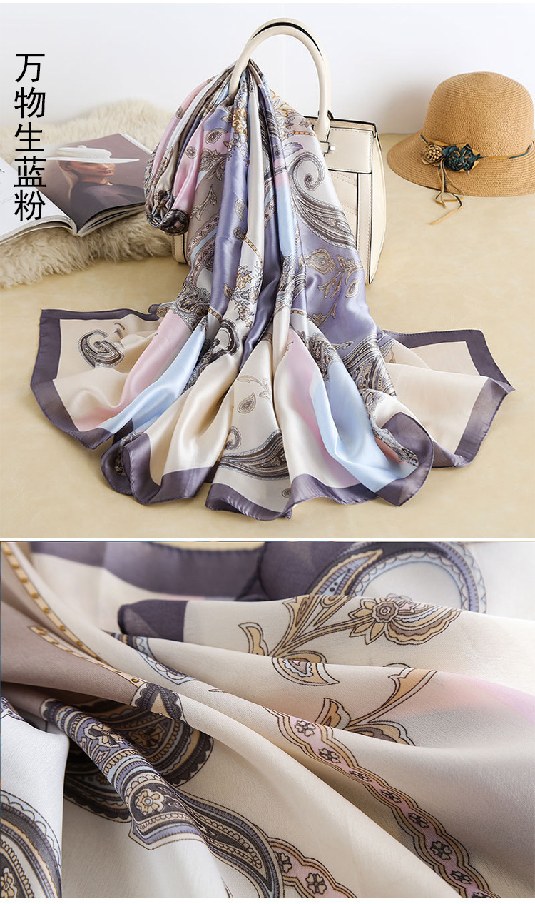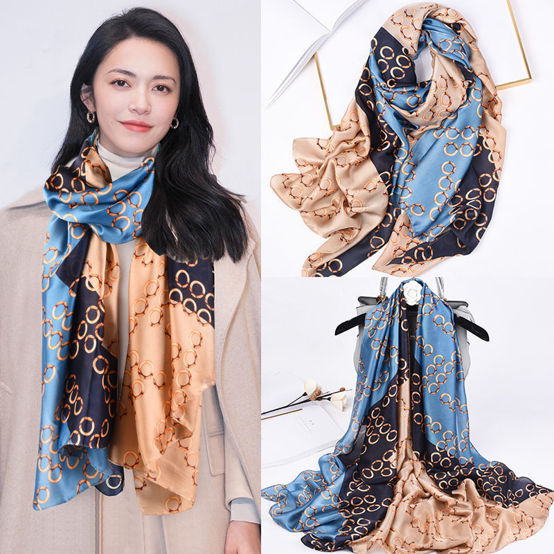 2024 새로운 실크 스카프 여성 패션 다목적 어머니 선물 여성의 날 시뮬레이션 실크 긴 실크 스카프 목도리 선물 상자 거즈 스카프스토어 가기