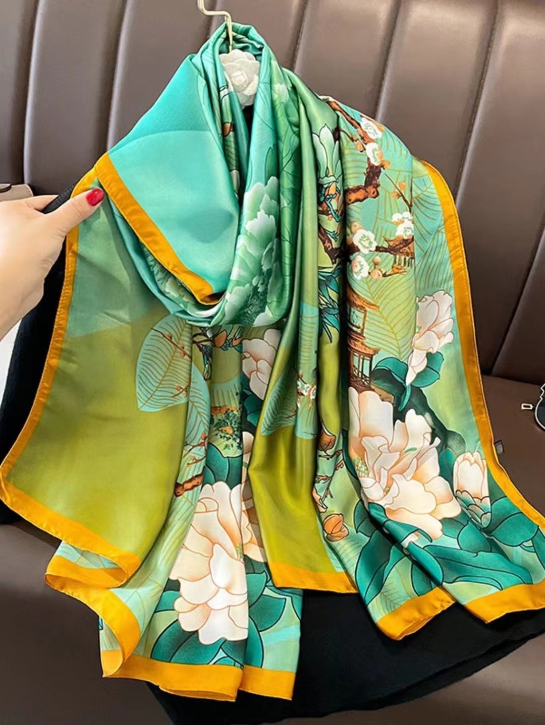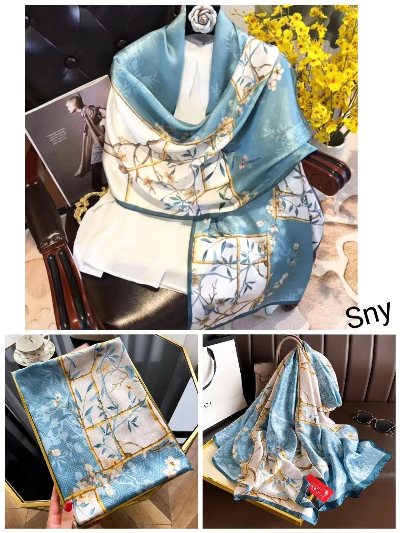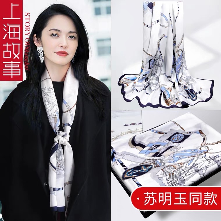 2024 새로운 실크 스카프 여성 패션 다목적 어머니 선물 여성의 날 시뮬레이션 실크 긴 실크 스카프 목도리 선물 상자 거즈 스카프스토어 가기