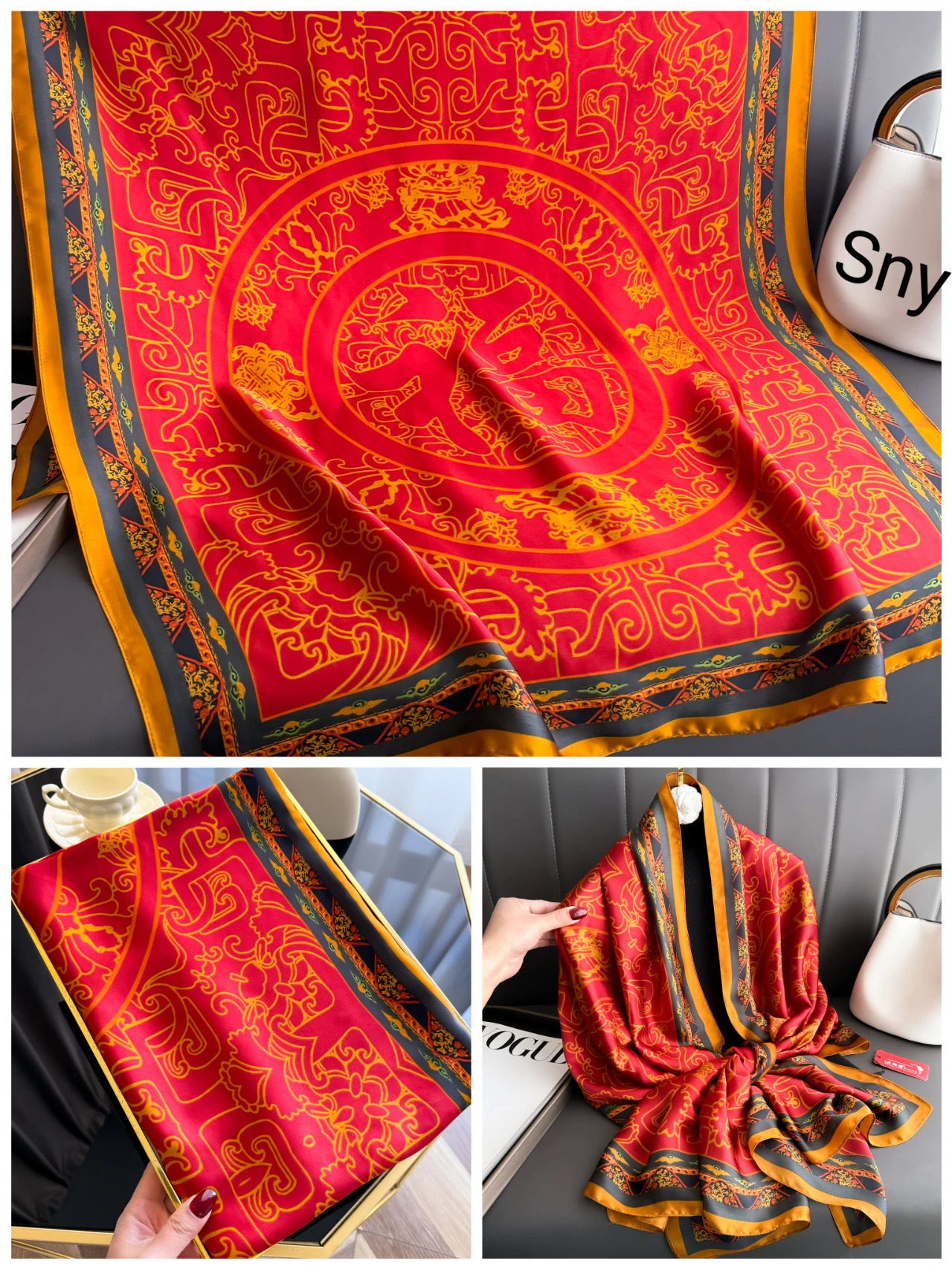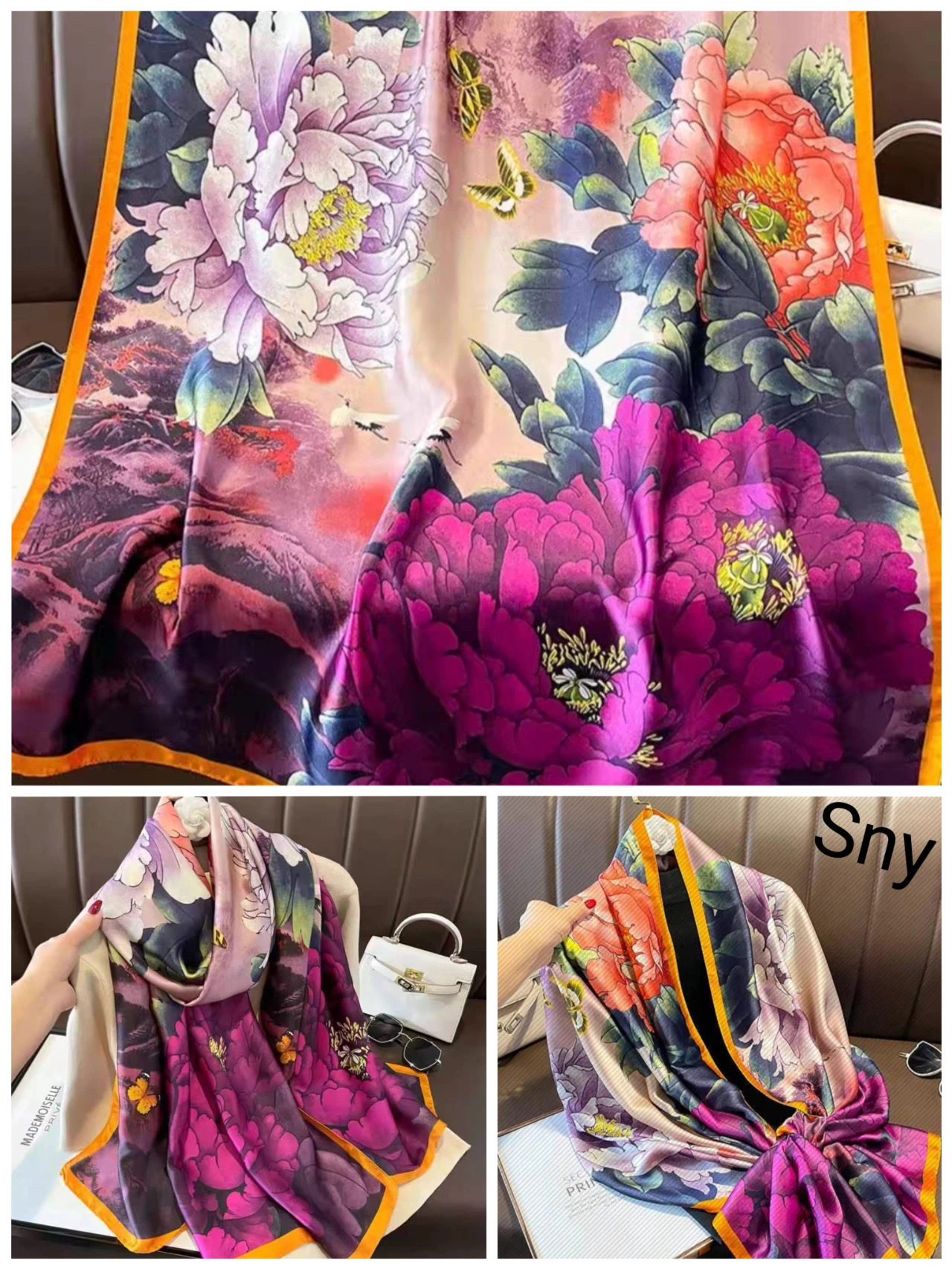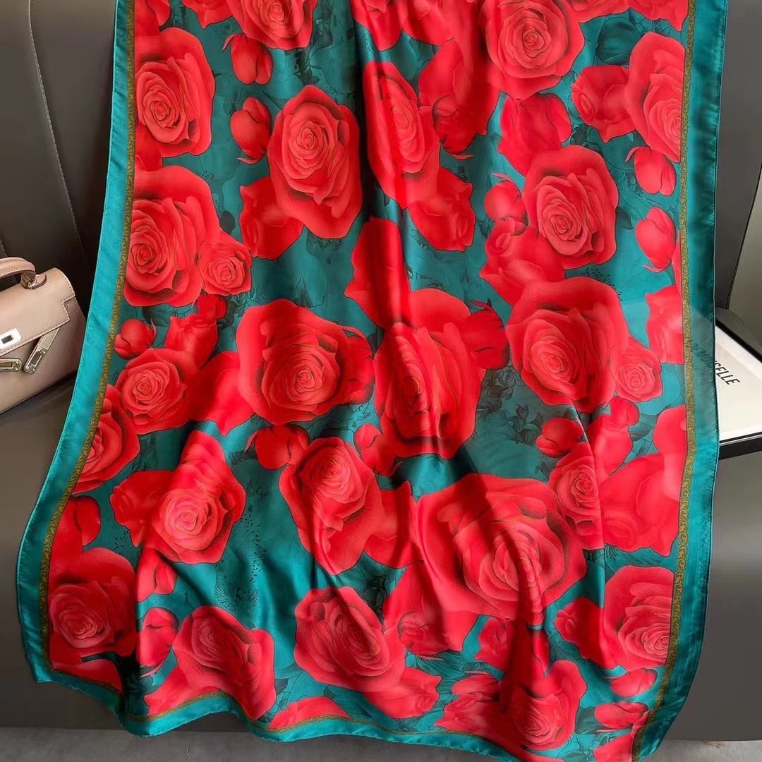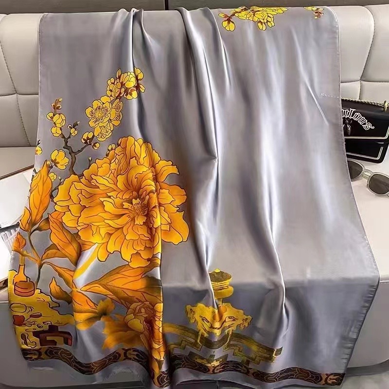 2024 새로운 실크 스카프 여성 패션 다목적 어머니 선물 여성의 날 시뮬레이션 실크 긴 실크 스카프 목도리 선물 상자 거즈 스카프