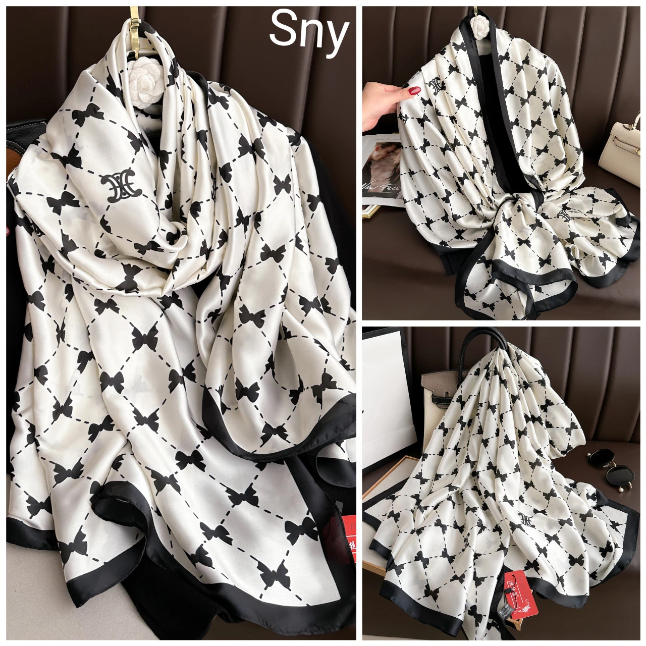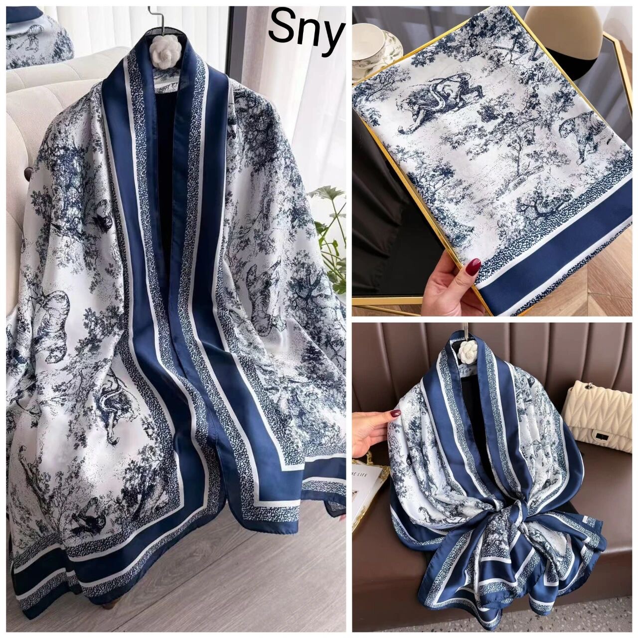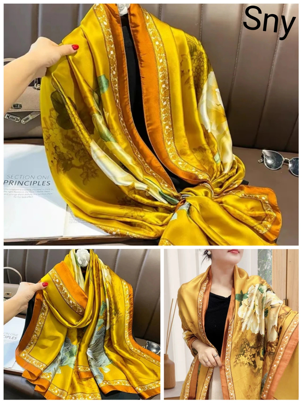 2024 새로운 실크 스카프 여성 패션 다목적 어머니 선물 여성의 날 시뮬레이션 실크 긴 실크 스카프 목도리 선물 상자 거즈 스카프