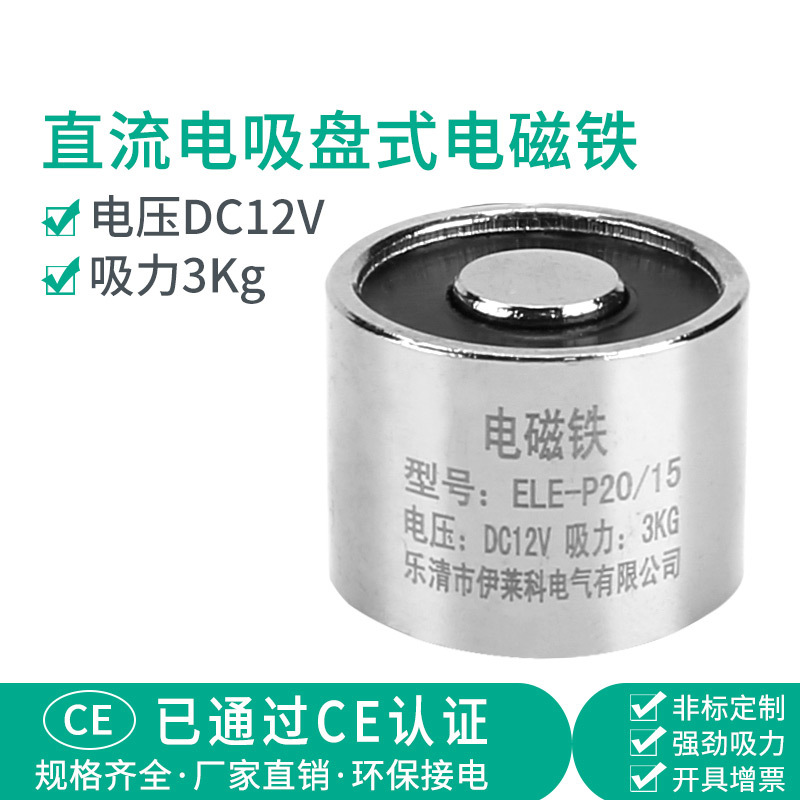 Elyco DC 전자석 흡입 컵 라운드 강한 자석 흡입 3KG ELE-P20/15 DC12V
