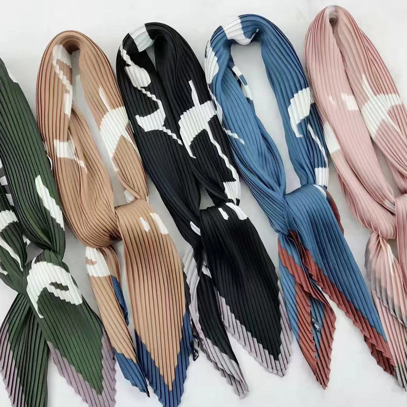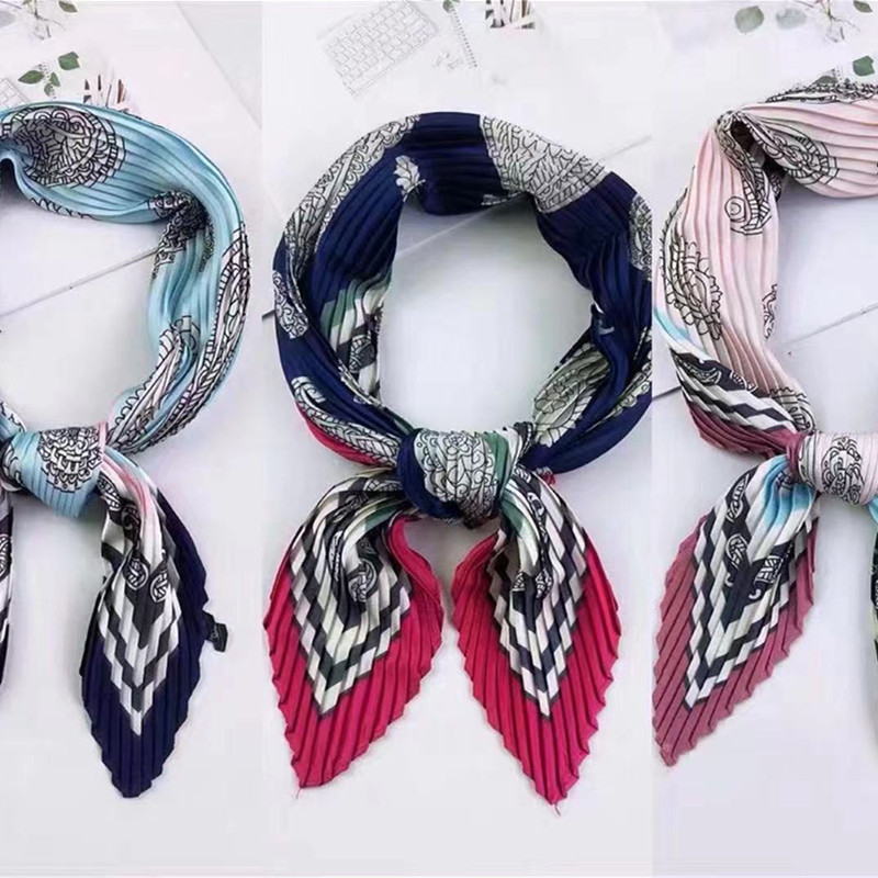 새로운 대외 무역 주름진 다이아몬드 작은 실크 스카프 한국식 스카프 여성 의류 리본 사계절 액세서리 웨이브 도트 인쇄 스퀘어 스카프