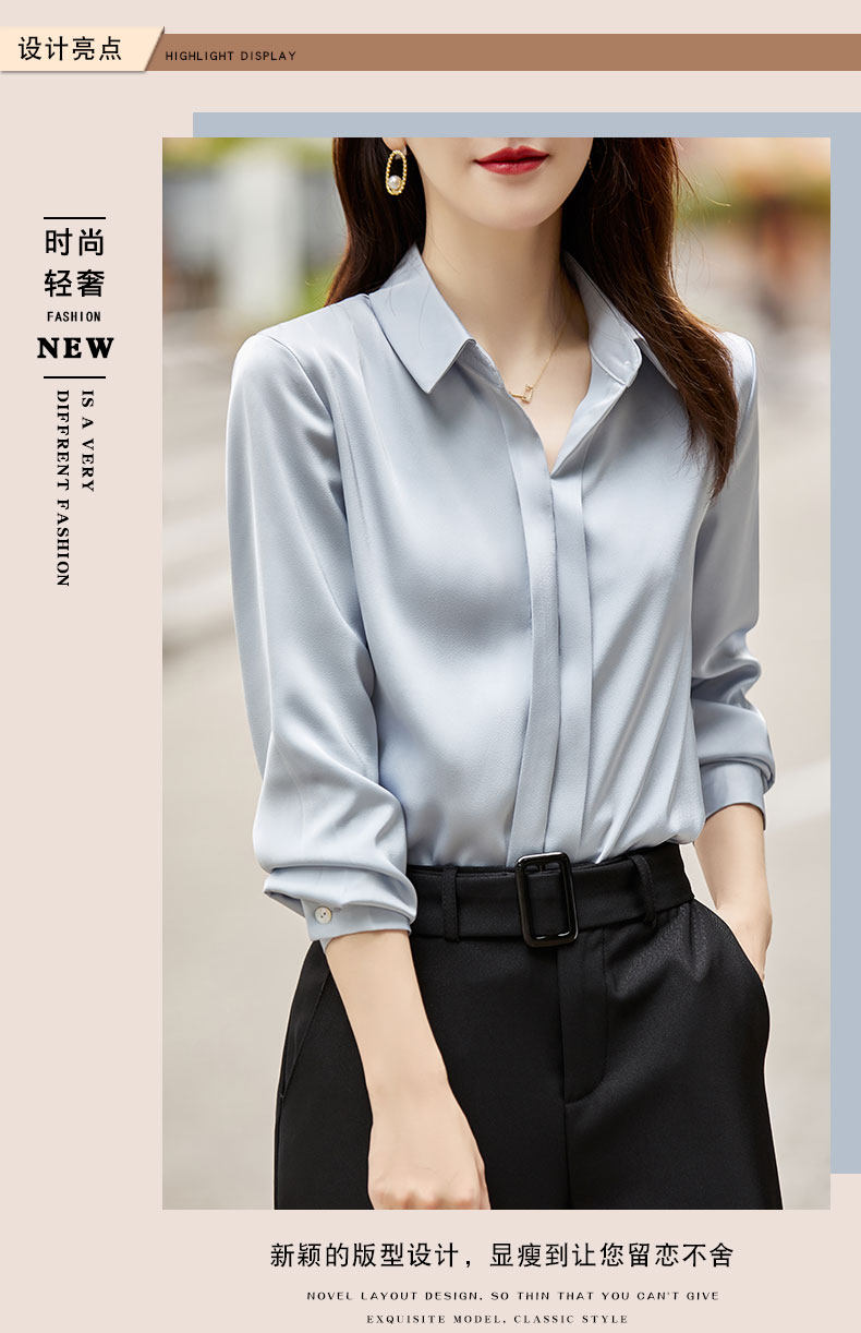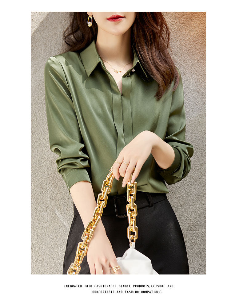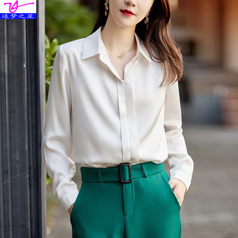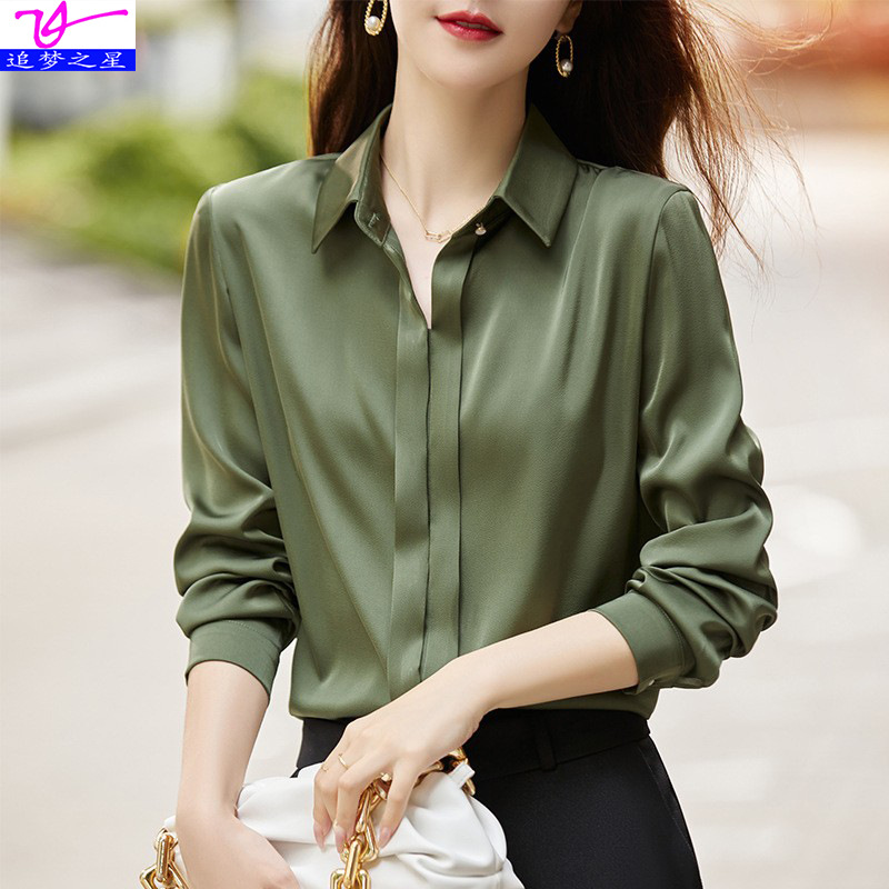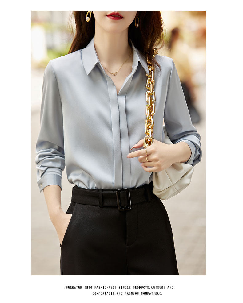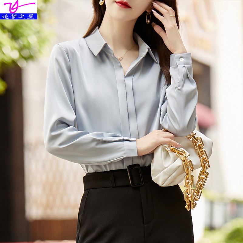 그레이 아세테이트 새틴 셔츠 여성용 2021 가을 새로운 우아한 고급 긴팔 탑 프로페셔널 베이스 셔츠스토어 가기