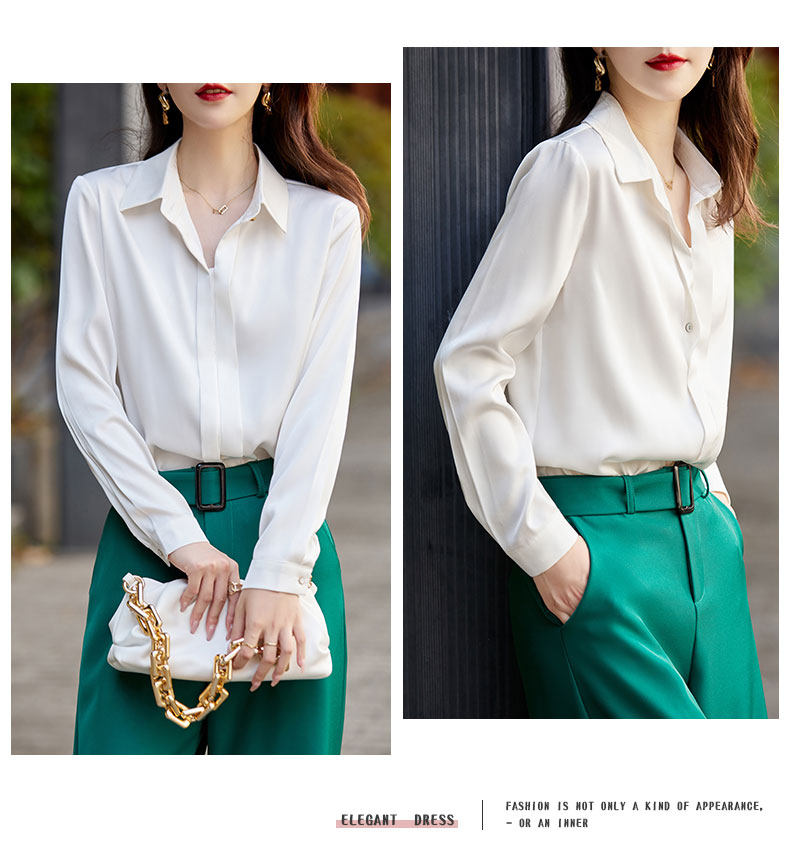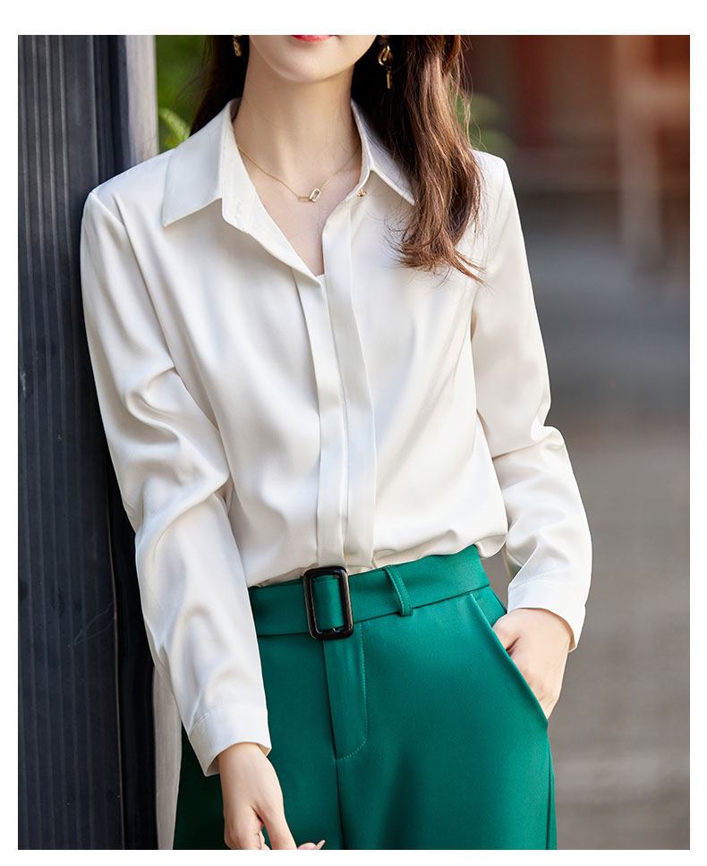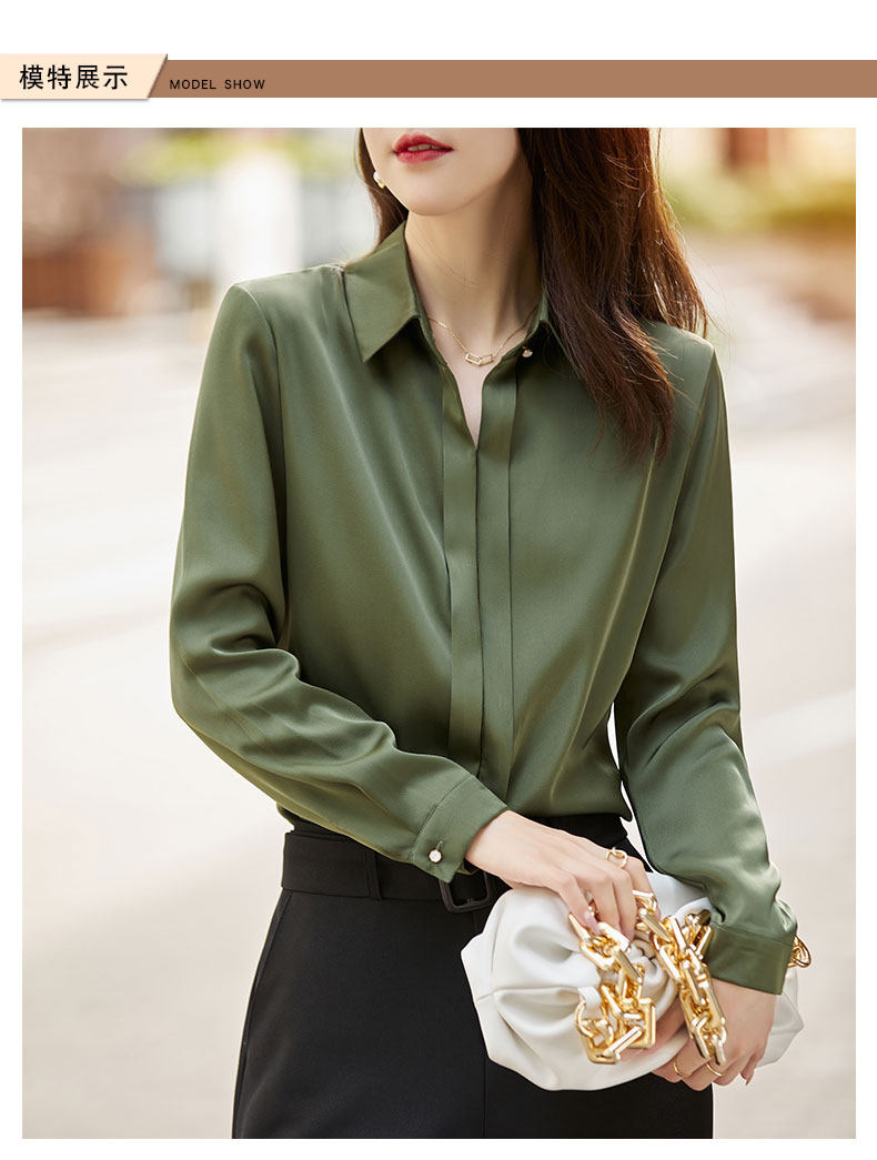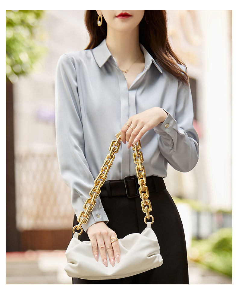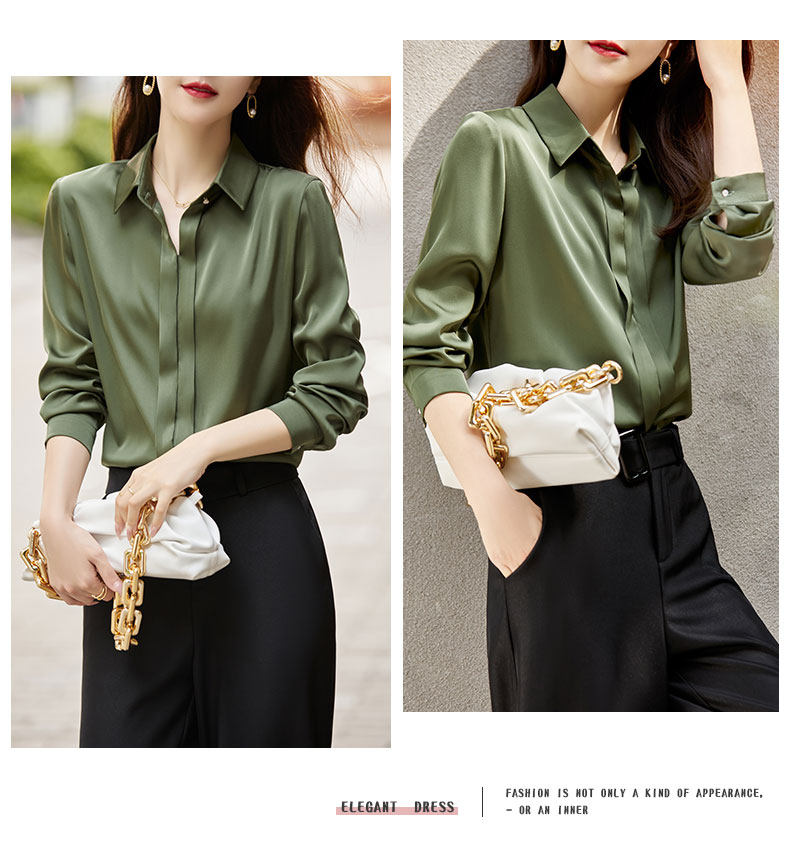 그레이 아세테이트 새틴 셔츠 여성용 2021 가을 새로운 우아한 고급 긴팔 탑 프로페셔널 베이스 셔츠스토어 가기