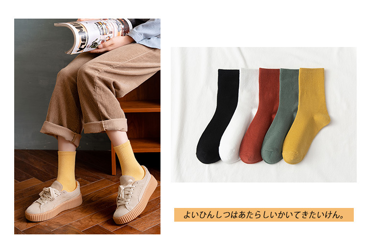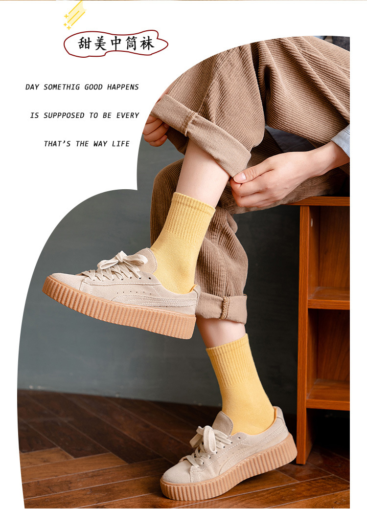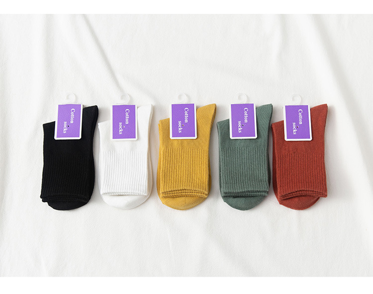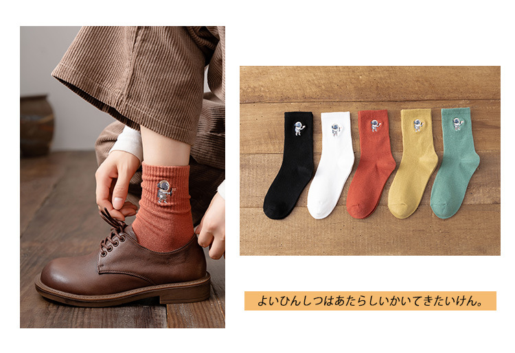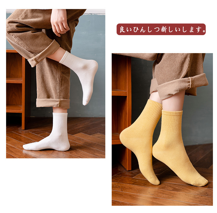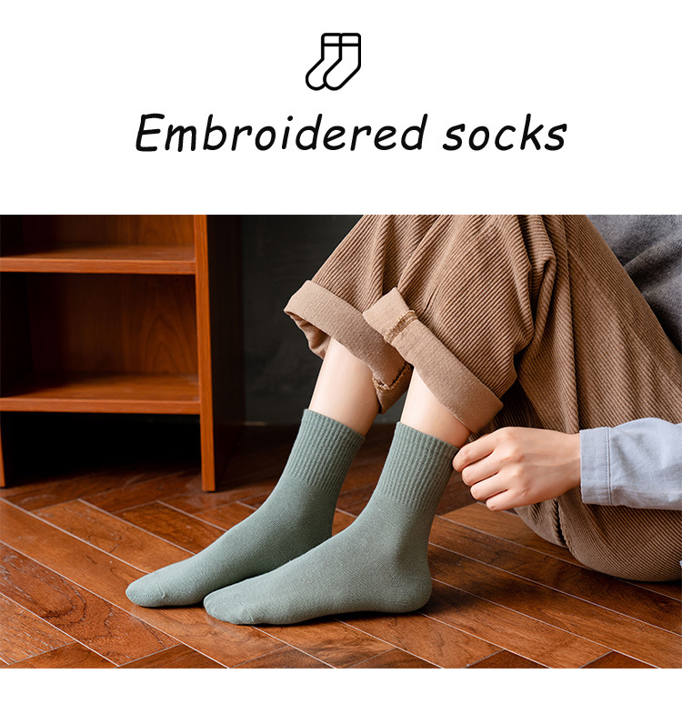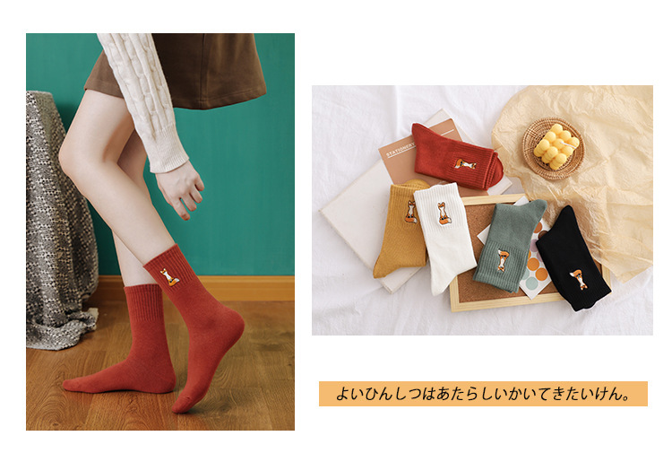 여성용 중목 양말 봄 가을 단색 면 양말 여성용 땀 흡수 통기성 일본식 달콤한 여우 자수 롱 양말 도매스토어 가기