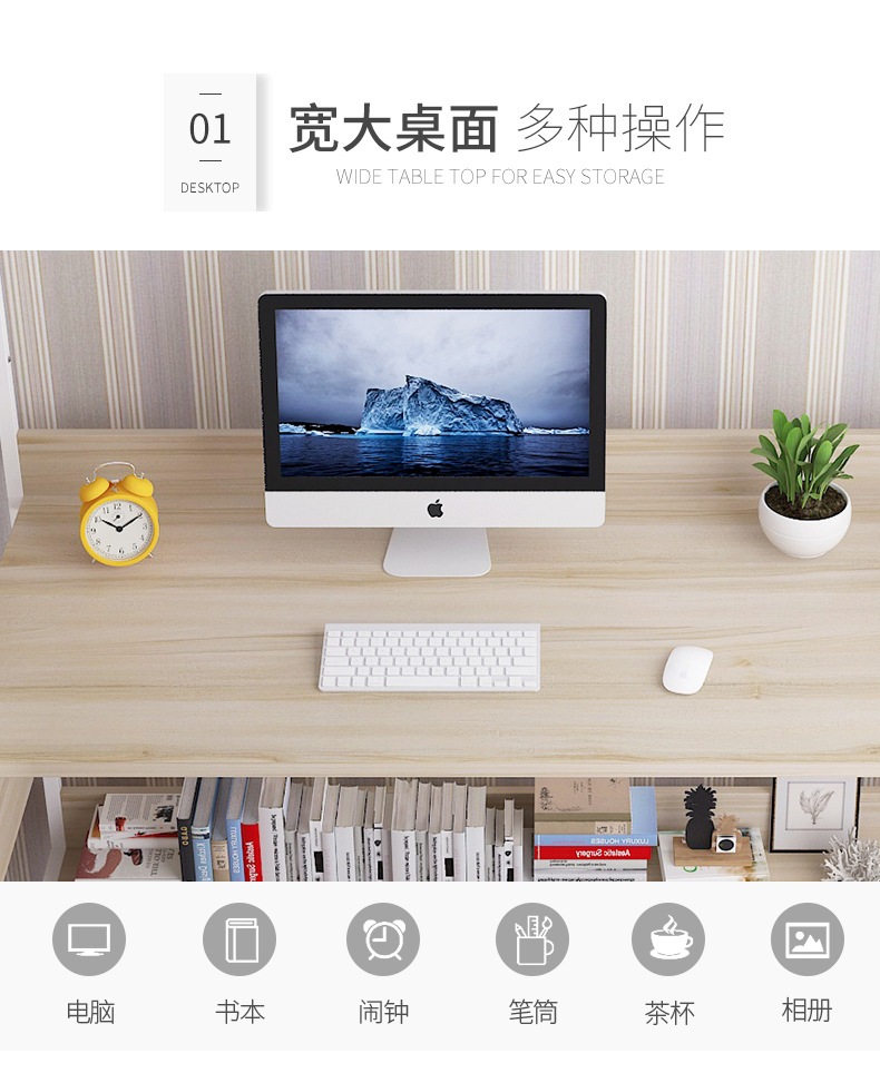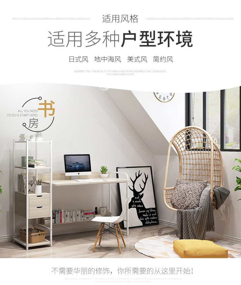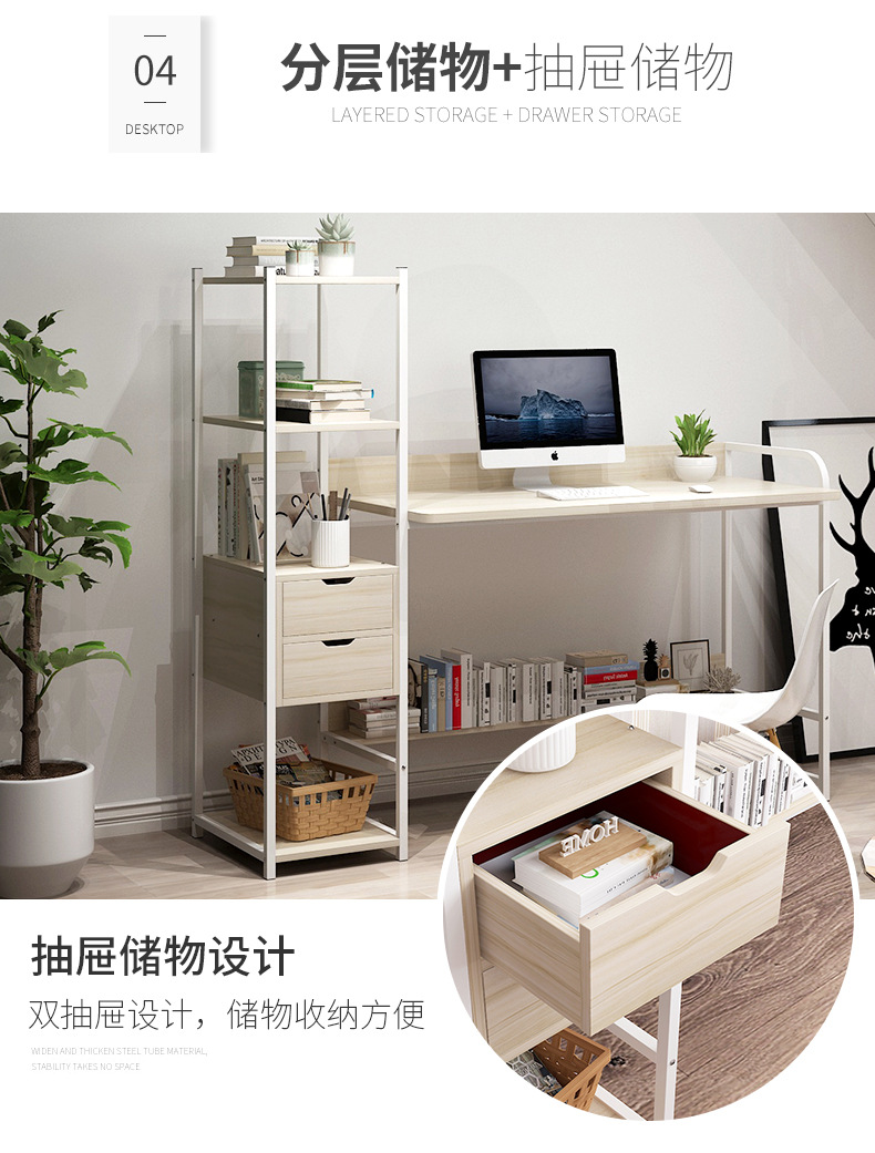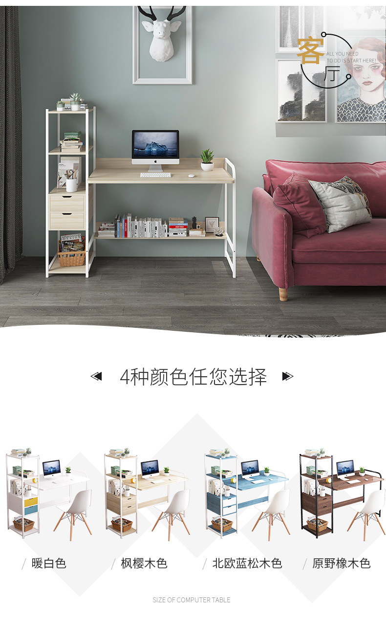 컴퓨터 데스크탑 테이블 홈 학생 책상 책장 조합 작은 아파트 간단한 침실 사무실 책상