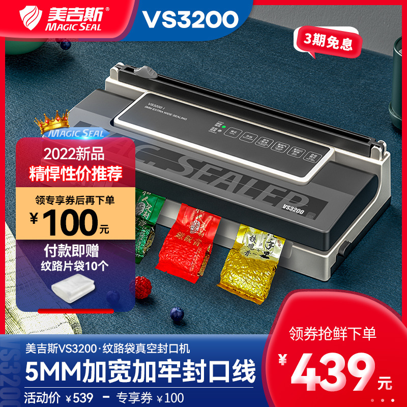 Megis VS3200 진공 식품 포장기 소형 가정용 상업용 밀봉 플라스틱 밀봉 신선 보관 건조 습식 이중 사용스토어 가기