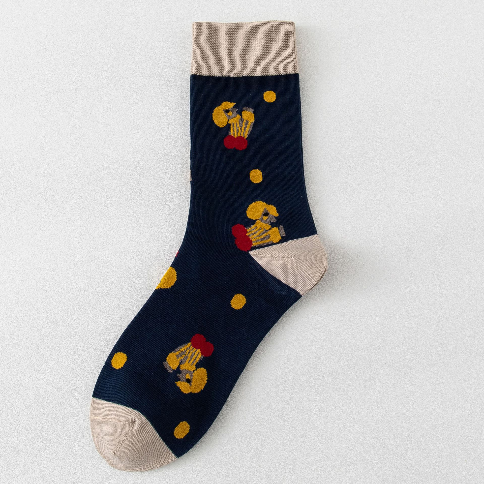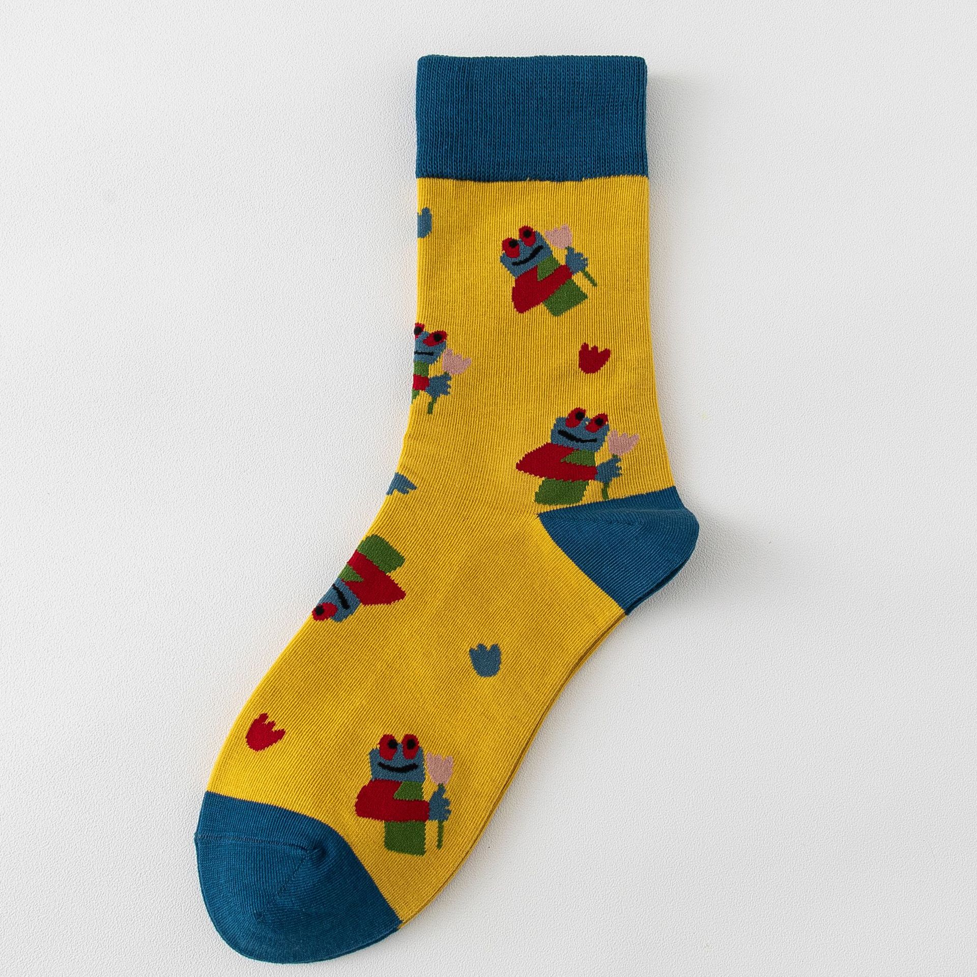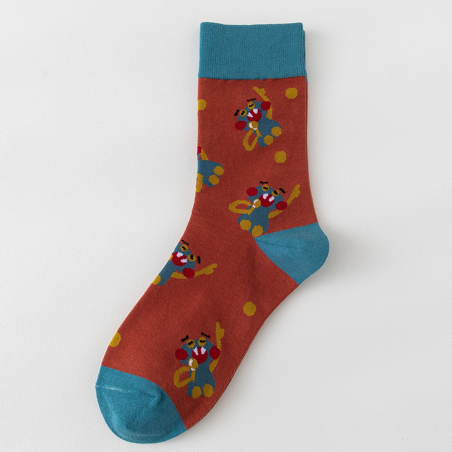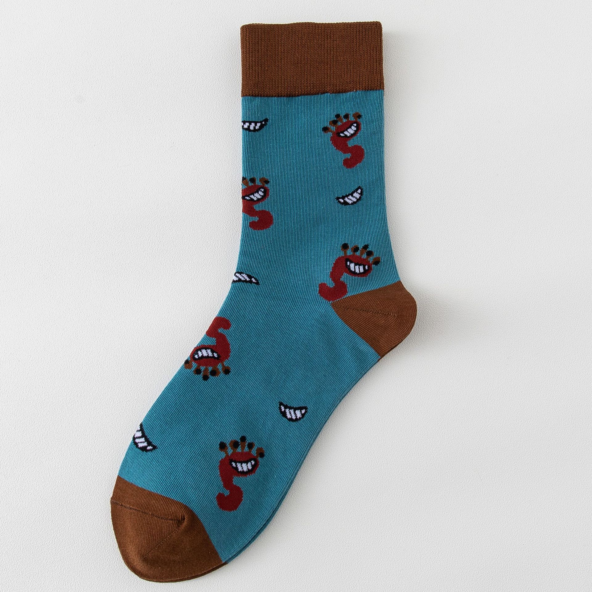 남성과 여성의 하이탑 양말 순면 빗질 코튼 타이트 Sirospun 만화 몬스터 조수 양말 독특한 롱 배럴 양말스토어 가기
