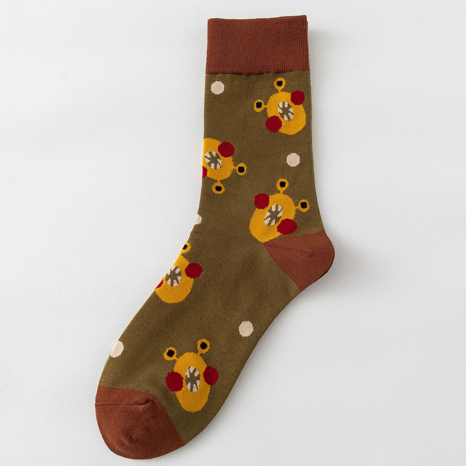 남성과 여성의 하이탑 양말 순면 빗질 코튼 타이트 Sirospun 만화 몬스터 조수 양말 독특한 롱 배럴 양말