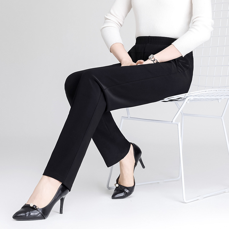 중년 및 노인 여성 바지 가을 새로운 탄성 높은 허리 할머니 플러스 사이즈 탄성 캐주얼 엄마 스트레이트 긴 바지