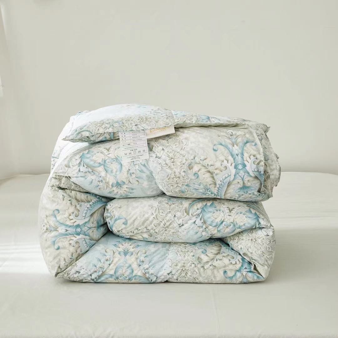 -这是一款根据德国权威机构师为亚洲人设计的一款人性化的羽绒被,采用100支柔赛丝面料 纯手工缝制 填充95%白鹅绒 的品质 不止于暖,更注重于“芯”