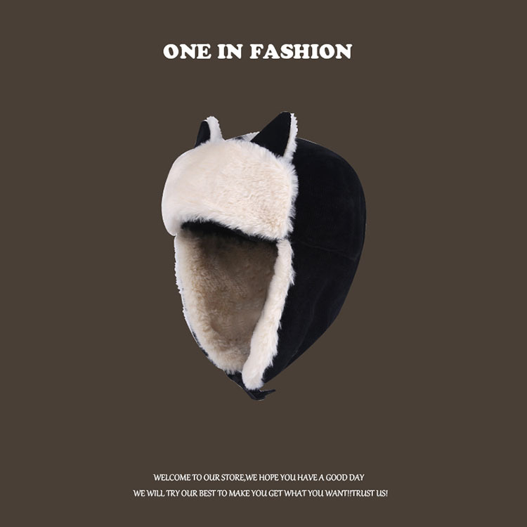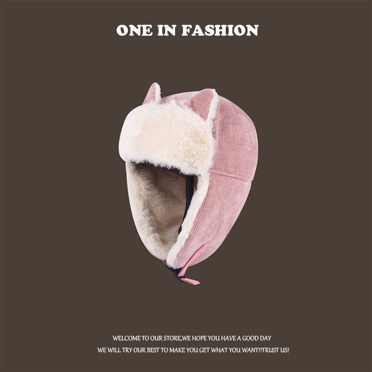 고양이 귀 Lei Feng Hat 여성용 한국식 귀여운 가을과 겨울 사이클링 방풍 귀 보호 모자 겨울 방한 따뜻한 면 모자