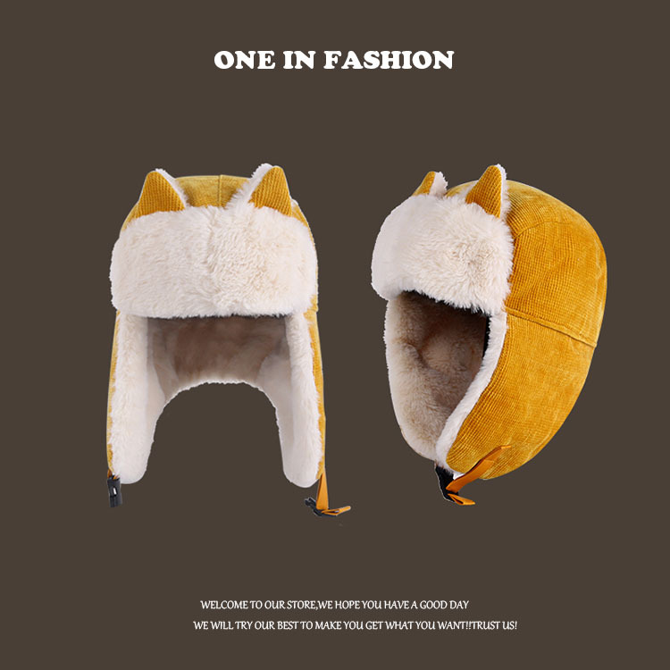 고양이 귀 Lei Feng Hat 여성용 한국식 귀여운 가을과 겨울 사이클링 방풍 귀 보호 모자 겨울 방한 따뜻한 면 모자스토어 가기