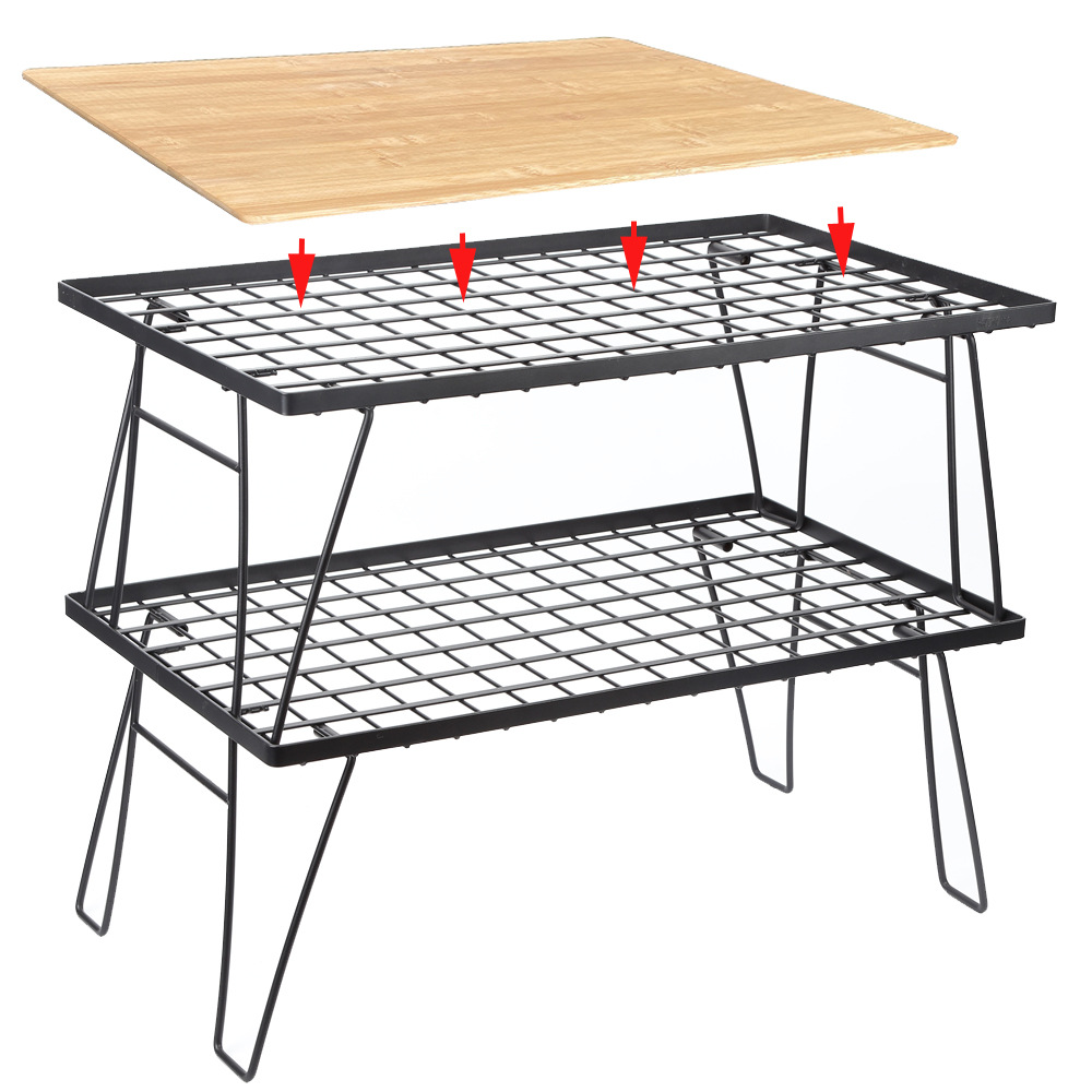 야외 캠핑 접이식 철 메쉬 테이블 캠핑 휴대용 대나무 보드 테이블 자율 주행 캠핑 스토리지 랙 그리드 피크닉 테이블
