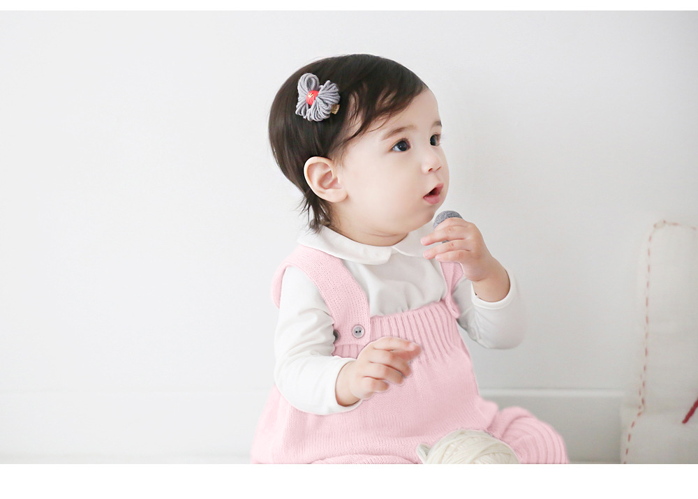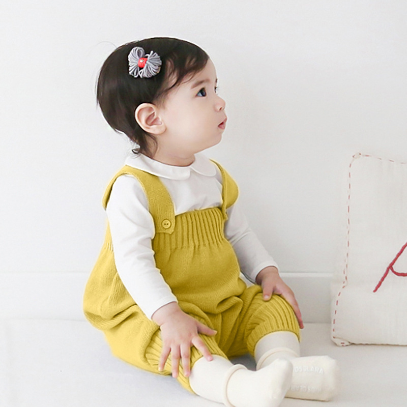 아기의 니트 오버올 인형 칼라 보토밍 셔츠 투피스 세트 봄과 가을 아기의 울 팬츠 연꽃 잎 칼라 셔츠 세트