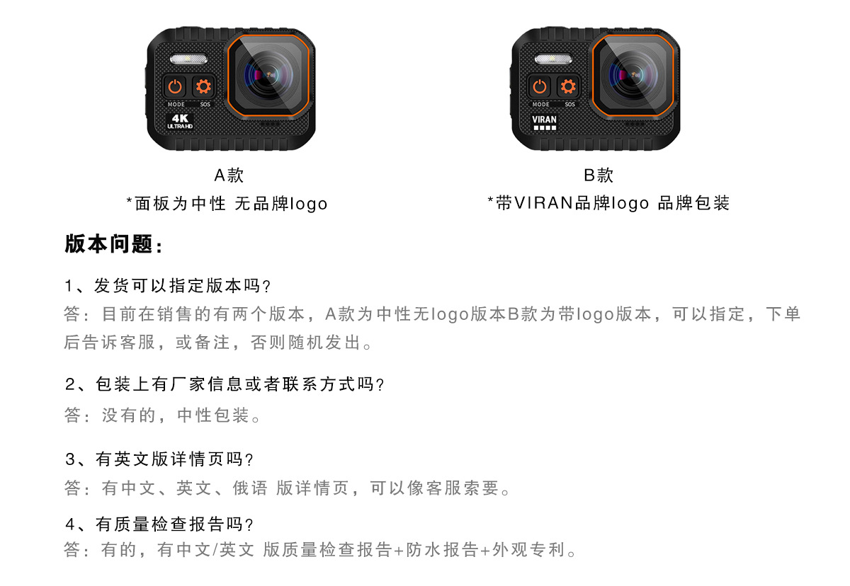 재고 4K 스포츠 DV 카메라 와이파이 다이빙 HD 야외 방수 안티 쉐이크 휴대용 미니 카메라 공장 직공급스토어 가기