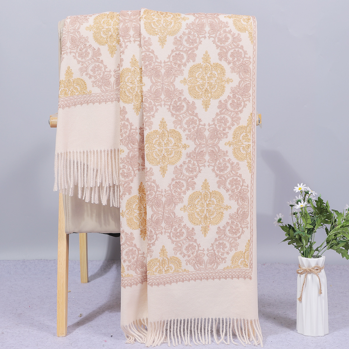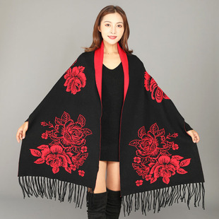 윈난 가을과 겨울 골드 실크 자수 캐시미어 스카프 여성용 에스닉 스타일 자수 크라운 두꺼운 따뜻한 숄 내부 몽골