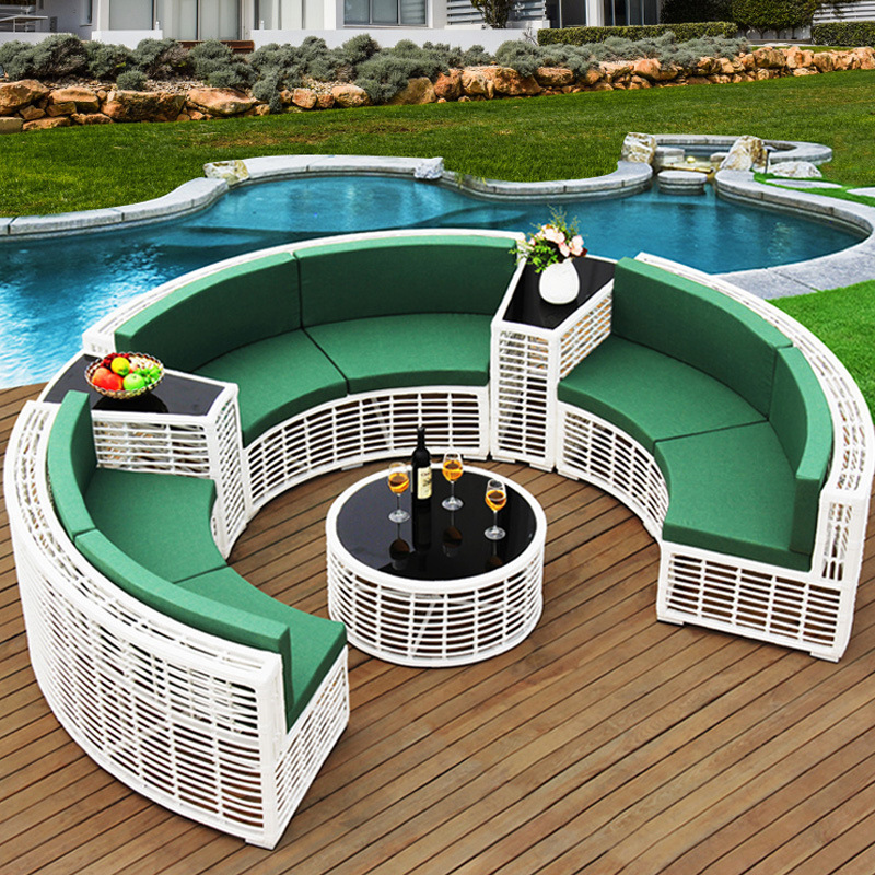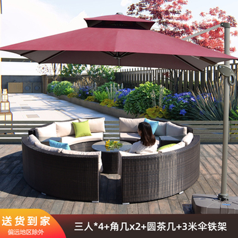 야외 안뜰 소파 라운드 조합 빌라 선샤인 룸 곡선 정원 지붕 3 m 야외 등나무 소파