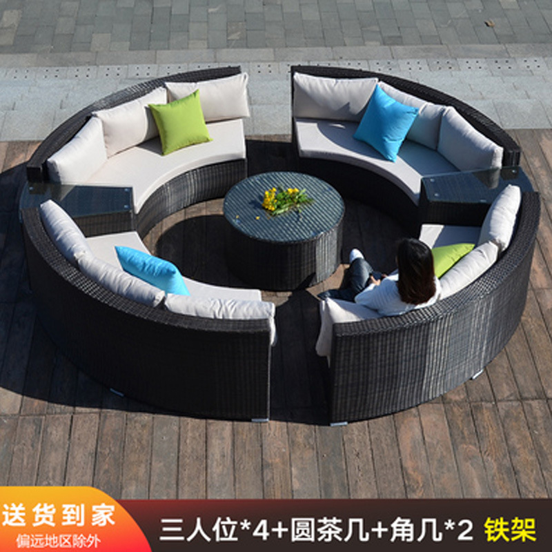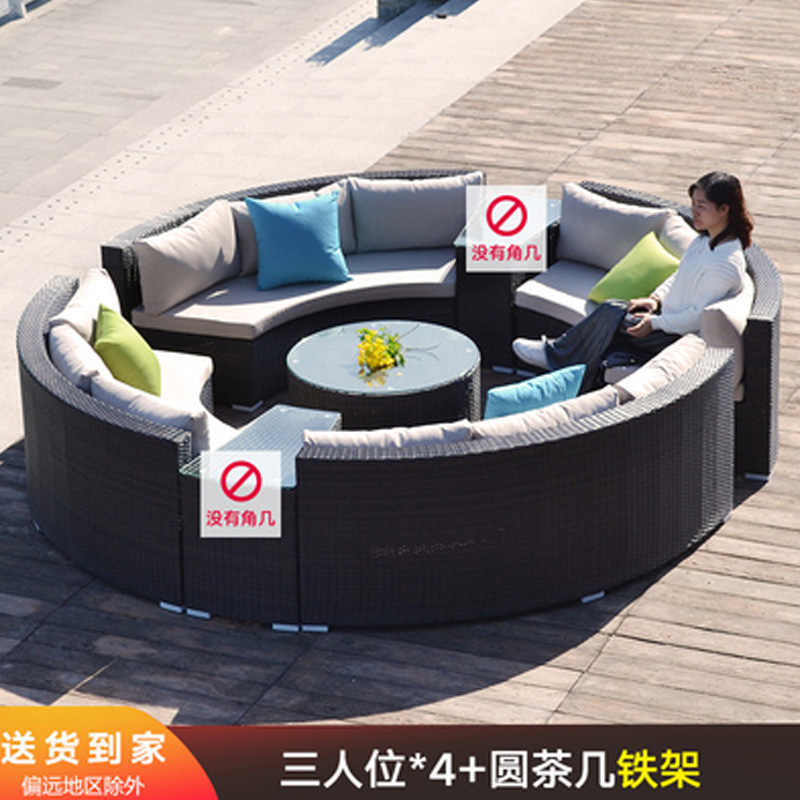 야외 안뜰 소파 라운드 조합 빌라 선샤인 룸 곡선 정원 지붕 3 m 야외 등나무 소파스토어 가기