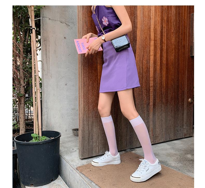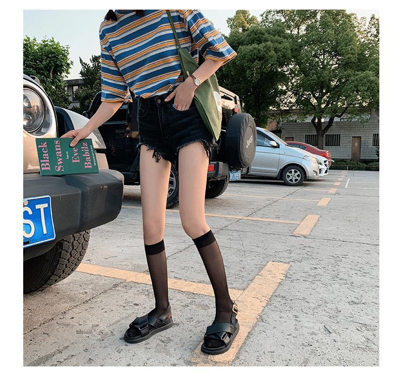 투명 송아지 양말 검은 양말 여성 JK 봄과 여름 얇은 중간 튜브 가을 긴 튜브 인 조수 반 튜브 스타킹 일본식스토어 가기