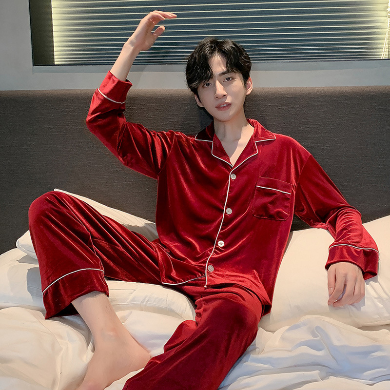 황금 벨벳 커플 잠옷 가을과 겨울 남자의 세트 여자의 잠옷 투피스 빨간 결혼식 가정 옷스토어 가기