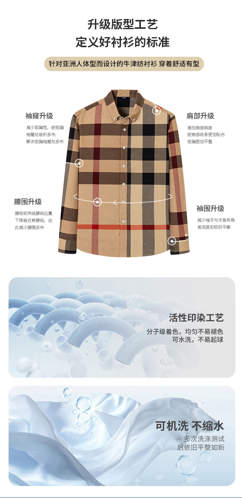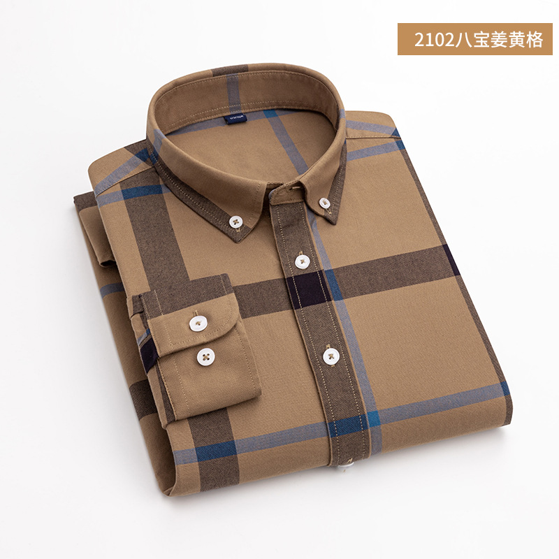 남성용 긴팔 캐주얼 비즈니스 셔츠 옥스포드 면 체크 패션 이너웨어 겸 외투용 구김 방지 고급 남성 셔츠