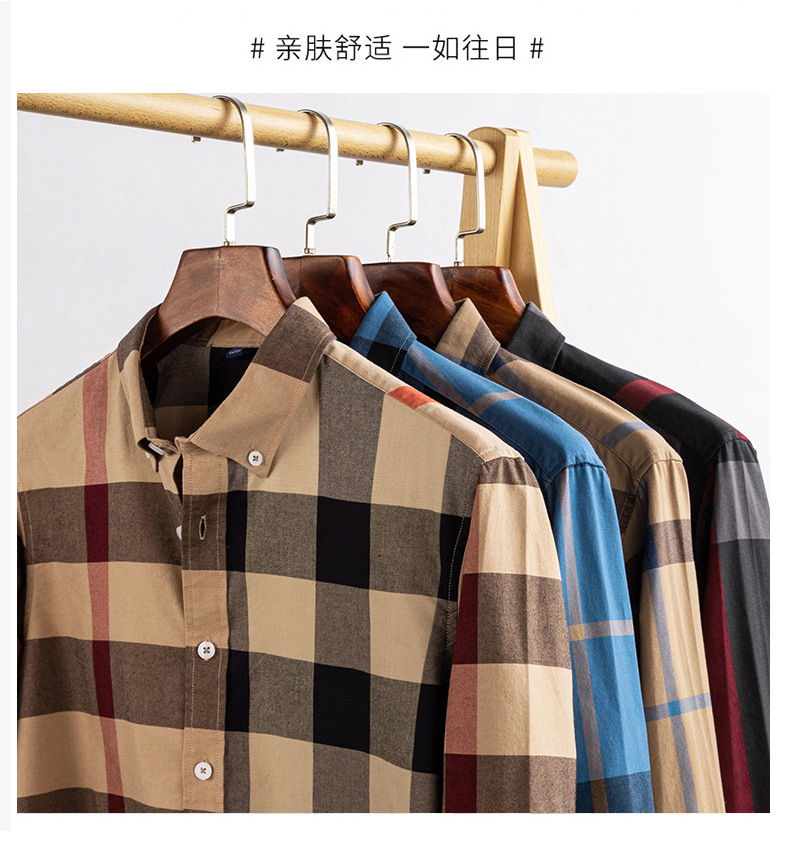남성용 긴팔 캐주얼 비즈니스 셔츠 옥스포드 면 체크 패션 이너웨어 겸 외투용 구김 방지 고급 남성 셔츠스토어 가기