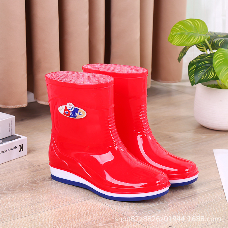 여성용 성인용 미드 튜브 레인 부츠 면 벨벳 주방 작업 신발 내마모성 미끄럼 방지 워터 슈즈로 겉옷을 위한 세련된 워터 부츠