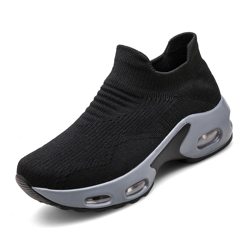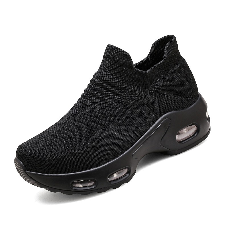 2025 국경 간 아마존 여성 신발 대형 캐주얼 신발 에어 쿠션 운동화 통기성 플라이 짠 검은 작업 신발 커버스토어 가기