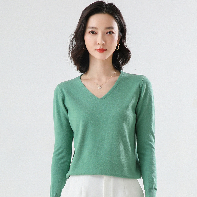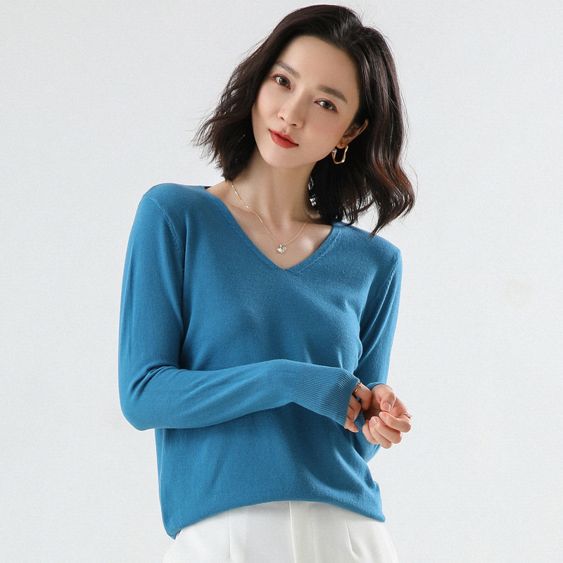 2021 가을 여성의 새로운 스웨터 섹시 스몰 V 칼라 하의 셔츠 긴 소매 풀오버 단색 스웨터 머리카락의 세대스토어 가기