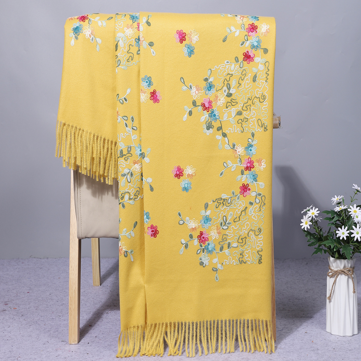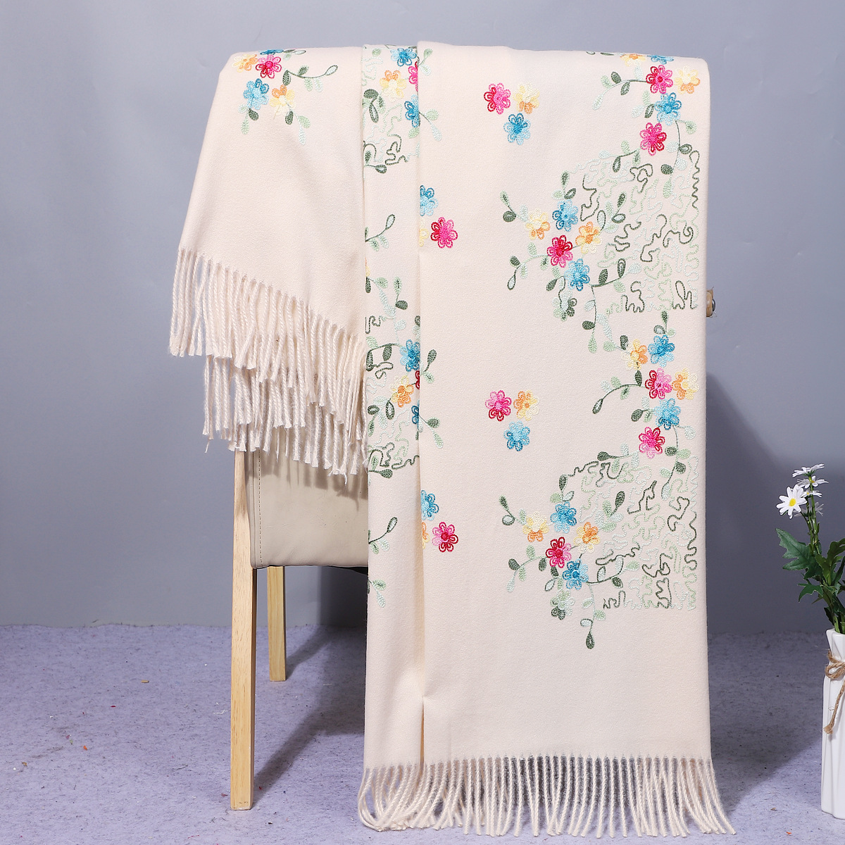 가을 겨울 네팔 스타일 자수 캐시미어 스카프 숄 다용도 니트 두꺼운 보온 민족풍 패션